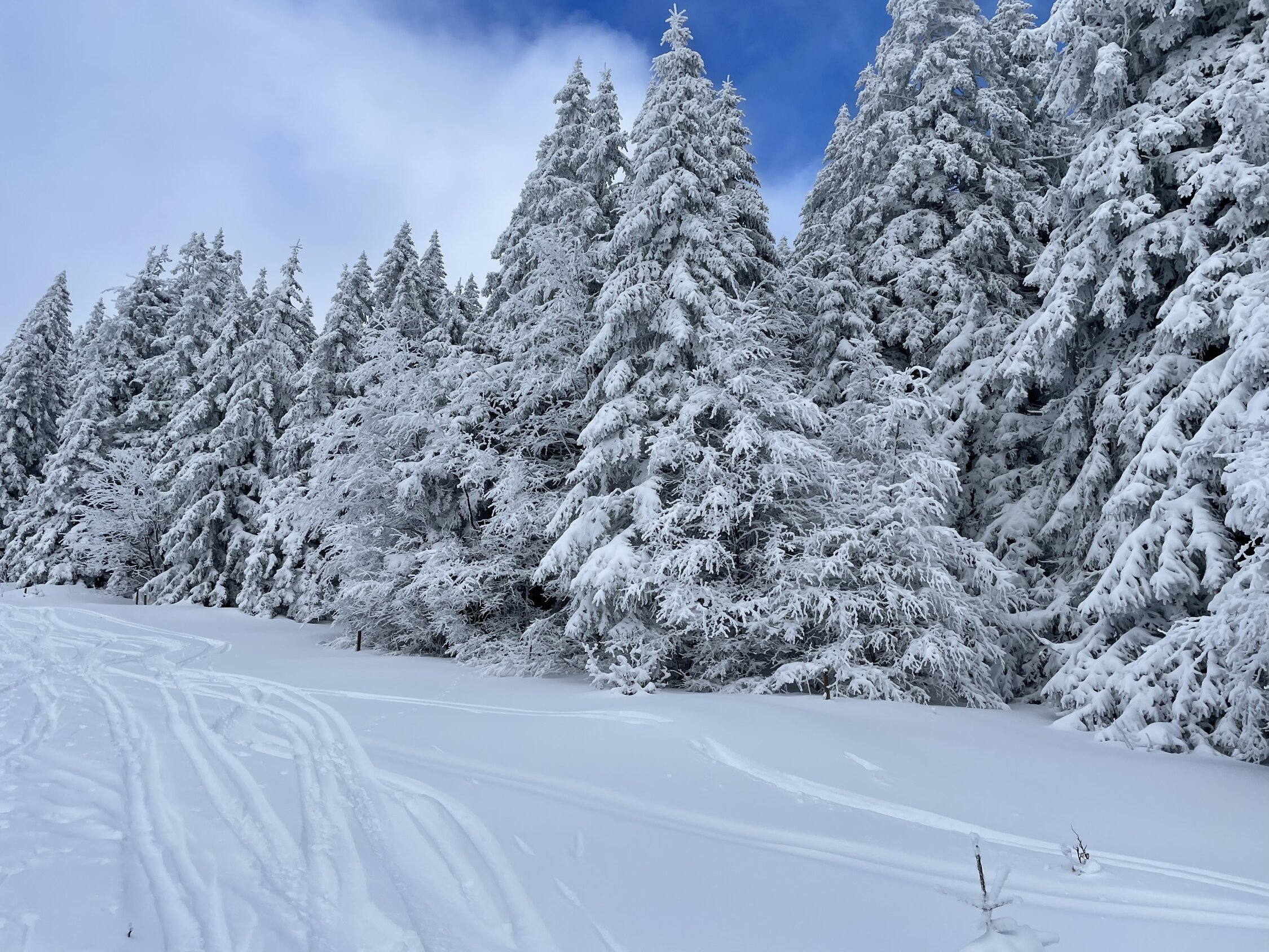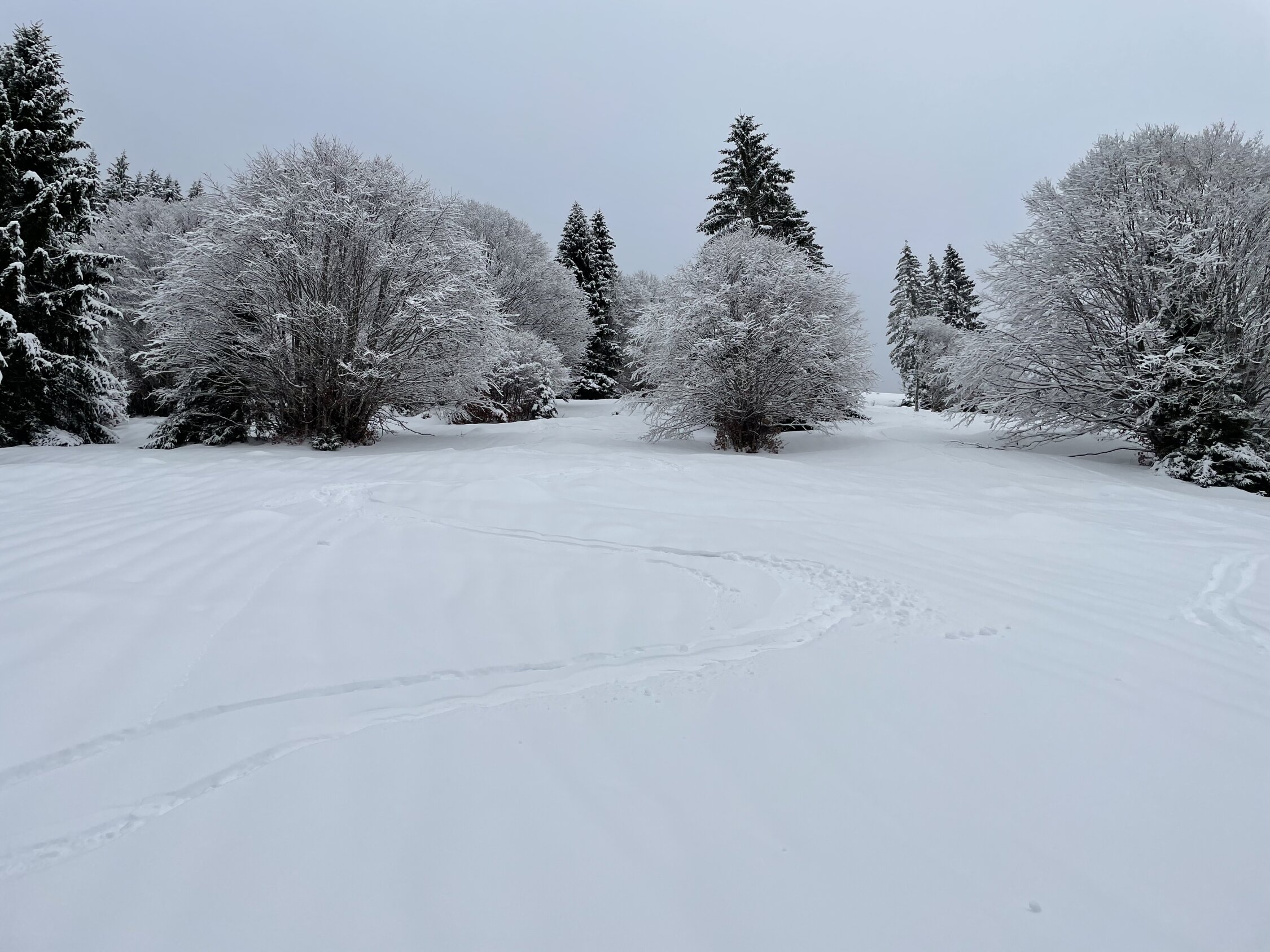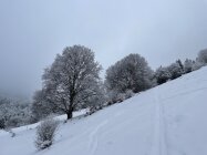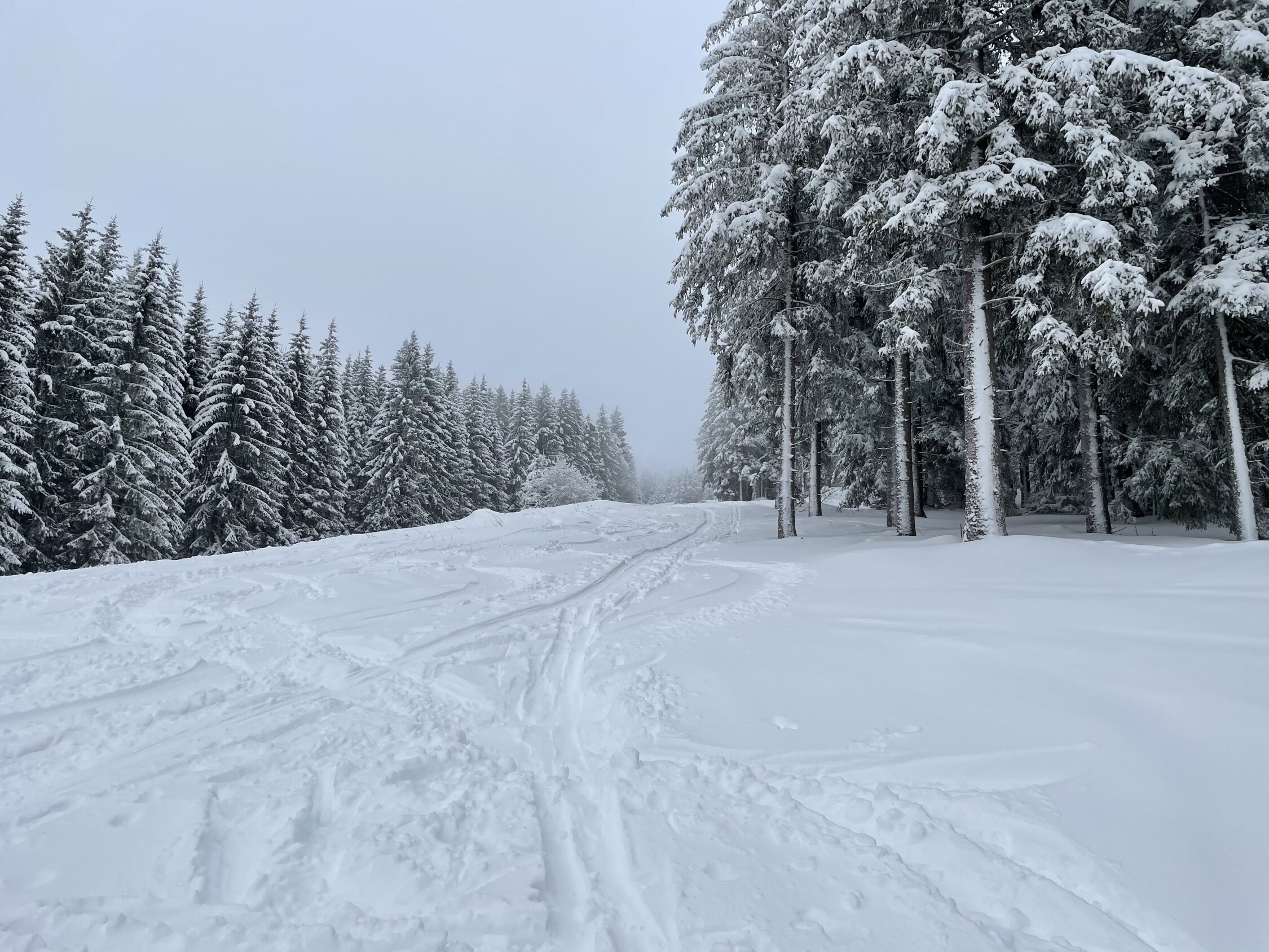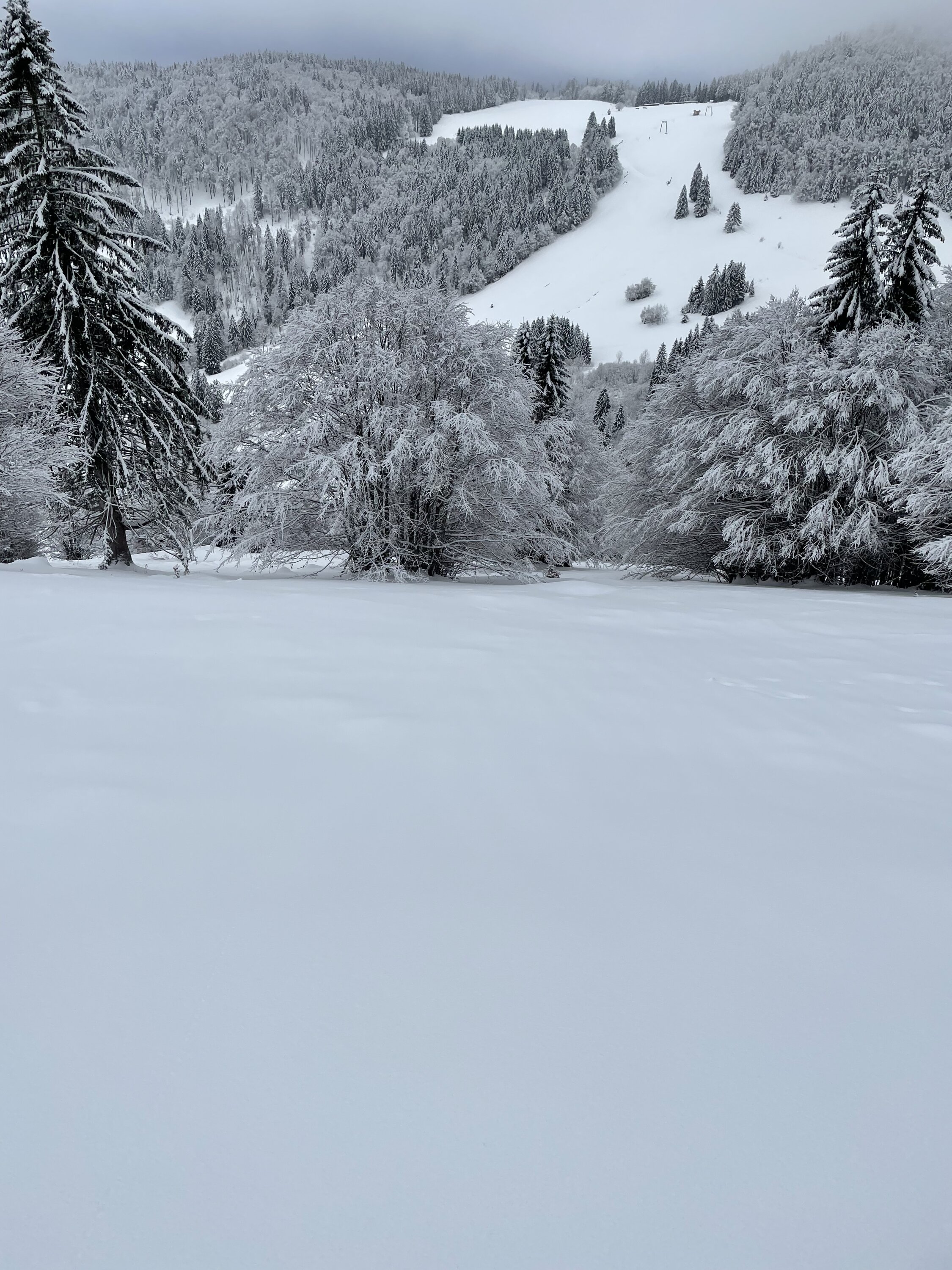 Entschuldigung, ich schon wieder und schon wieder von hier… ich hatte einen freien Nachmittag, und anstatt mich mit Weihnachtseinkäufen rumzuärgern, wollte ich lieber sehen, was sich mit den Schneefällen seit Montag geändert hat. Es war relativ warm, Schneefallgrenze war erst kurz unter Bernau, ich schätze mal auf ca 800 MüM. Auch hat es nicht soo viel geschneit. Aufstieg bei 0 Grad unten problemlos, am Gipfel dann whiteout und gefühlt sehr kalt wegen dem hier herrschenden Wind. Abfahrt im Gipfelhang wäre super gewesen, hätte man was gesehen:-). Darum war heute die Waldschneise das Beste, guter Pow und noch unverspurte Quadratmeter. Der Dorfhang war dann eine leise Enttäuschung, da pappig. Hatte ich schon im Aufstieg vermutet. Drum auch das hellgrüne Smiley.