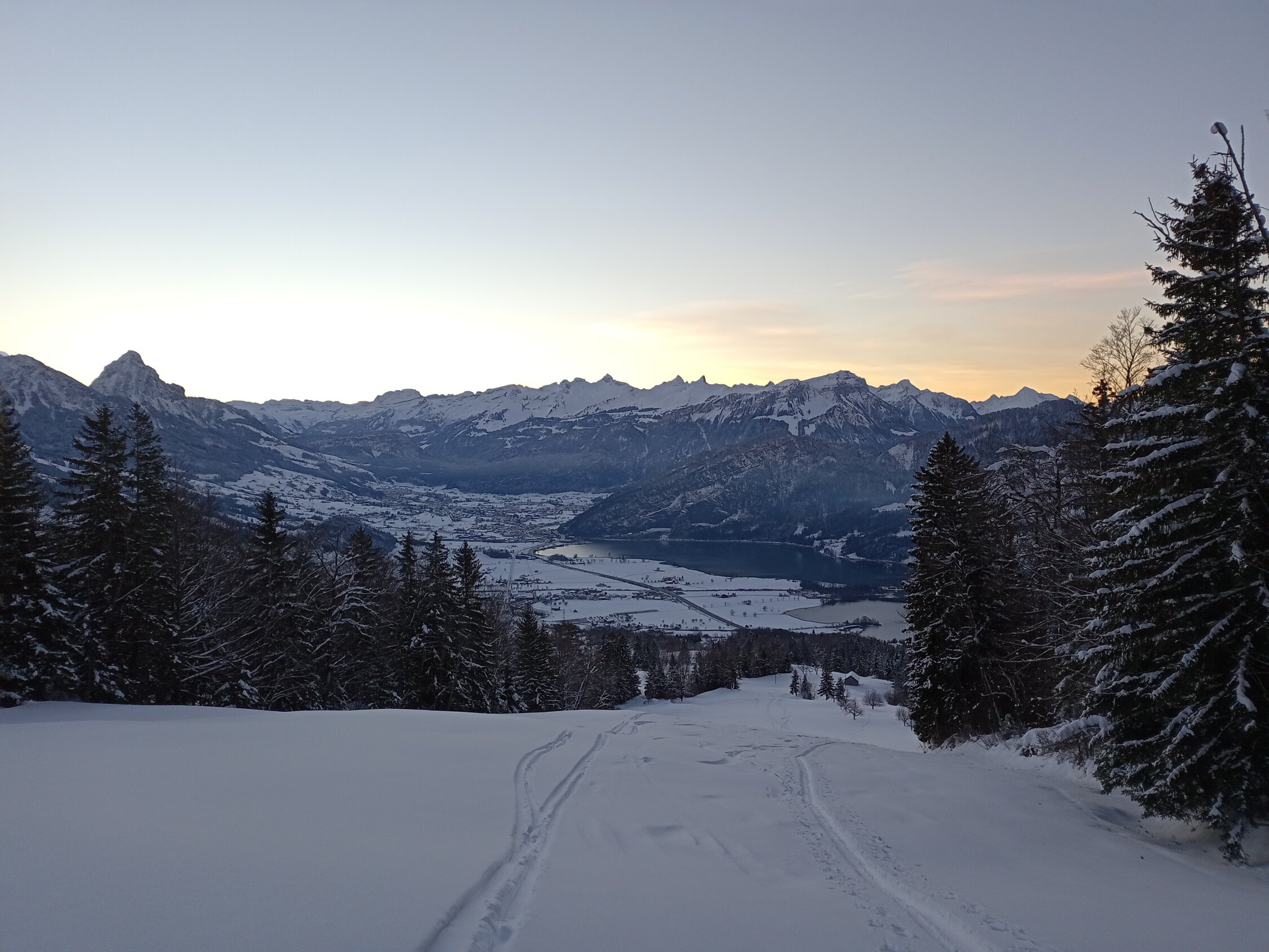 Um 7:00 ab Bahnhof Steinerberg los. Gerade genügend hell das der Start ohne Stirnlampe möglich war.