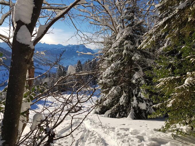 Von Sattel via Peterschwändi, Halsegg. Abfahrt nach Ecce Homo