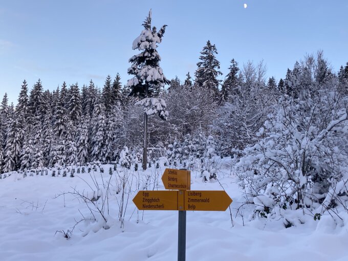 Ab Kirche oder Schulhaus Der Lisiberg ist von verschidenen Orten aus begehbar. Ob von Bern oder von Kirche Zimmerwald oder Niedermuhlern.