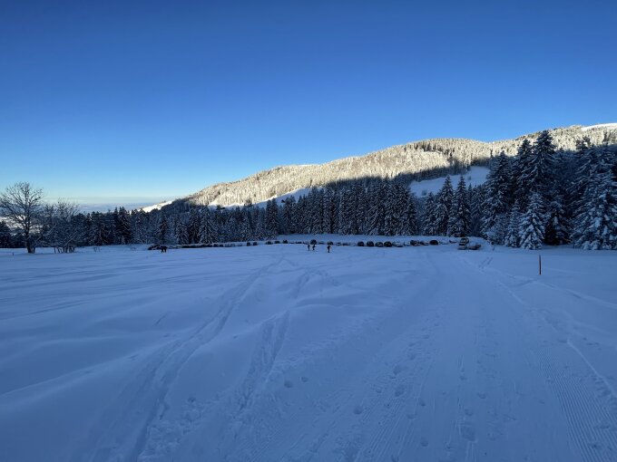 Da es in den nächsten Tagen öfter mal positive Temperaturen geben wird, dürfte der Powder nicht ewig halten. Schnee hat es aber mehr als genug, darum ist die Tour vermutlich noch lange gut zu machen.