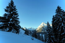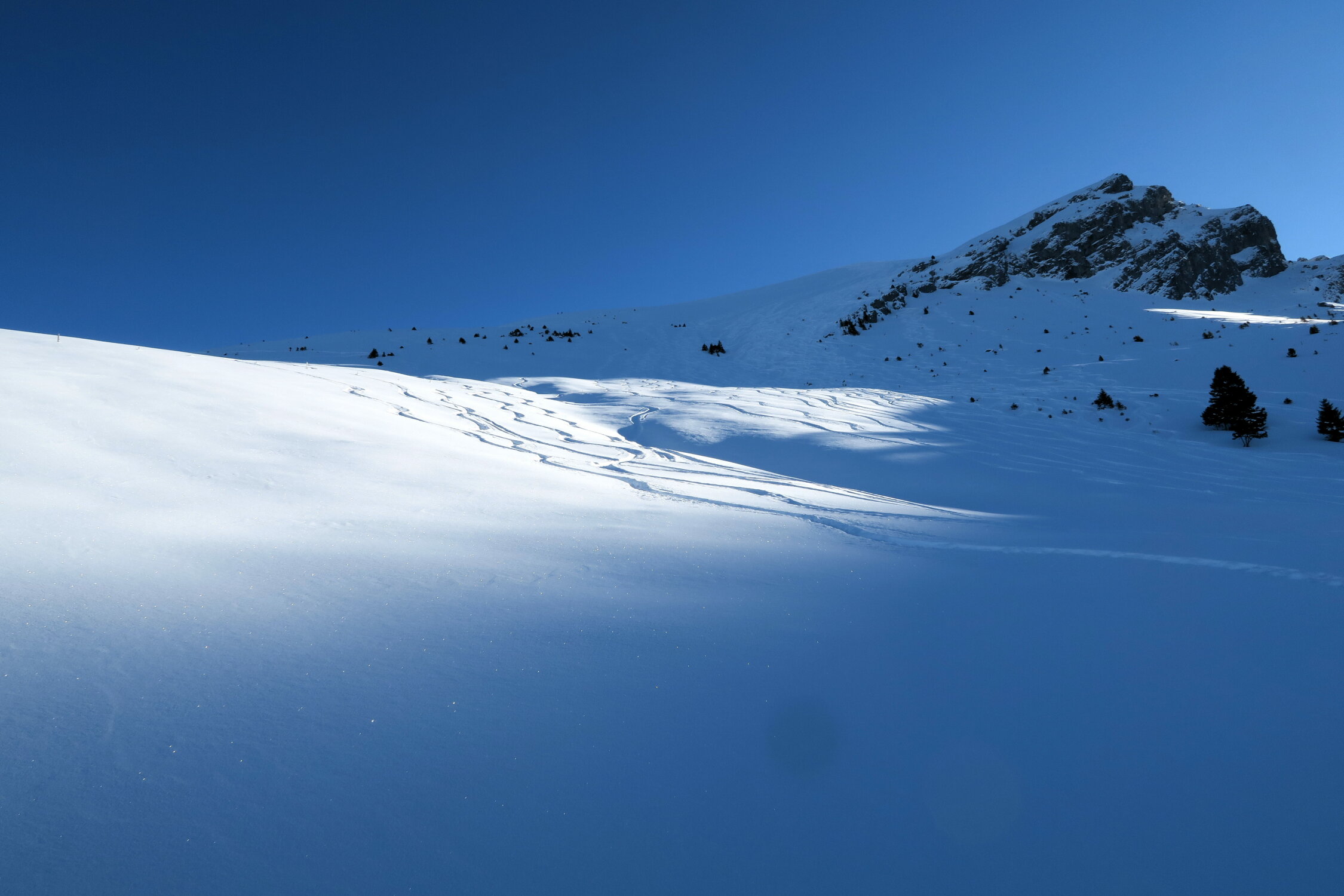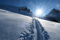 Très belle matinée en montagne, grand beau. L'enneigement du Diemtigtal est excellent, assez de neige depuis Tiermatti pour partir et revenir sans Steinkontakt dans les pentes du bas. Bonne trace de montée, peut être parfois un peu raide, les couteaux pourront être utiles sur le bas et dans la forêt dans les prochains jours quand la neige sera plus dure, aujourd'hui pas nécessaires.