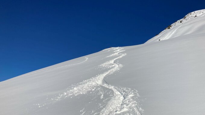 Traumhaft schöne Tour mit Topverhältnissen. Die Spur ist sehr gut angelegt. Beim ersten Hang quert die Spur erst oben in den Wald. Somit ist es angehemer, als durch den Wanderweg im Wald hochzusteigen. Nach dem Wald ist es wegen der Sonneneinstrahlung etwas klebrig. Es hat viel Pulverschnee bis zum Gipfel. Sehr gute Unterlage von oben bis unten. Beim Scherizug ist die Lawine schon runter. Somit kann man gut links und rechts noch etwas Pulverschnee finden. Da die Lawine nicht so weit nach unten geht, hat man im unteren Teil des Scherizugs schönen Pulverschnee. Dort wo die Sonne nicht hinkam, hat es immer noch Canadapowder.