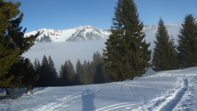 Fazit: Ausgezeichnet vom Wetter, Stimmungen und Ruhe im Gelände, Abstrich die Scneequalität. Auf der ganzen Runde nur 3 Personen begegnet.