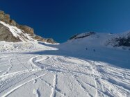 Abfahrt in gut gesetztem Pulver mit noch ein paar unverspurten Schwüngen