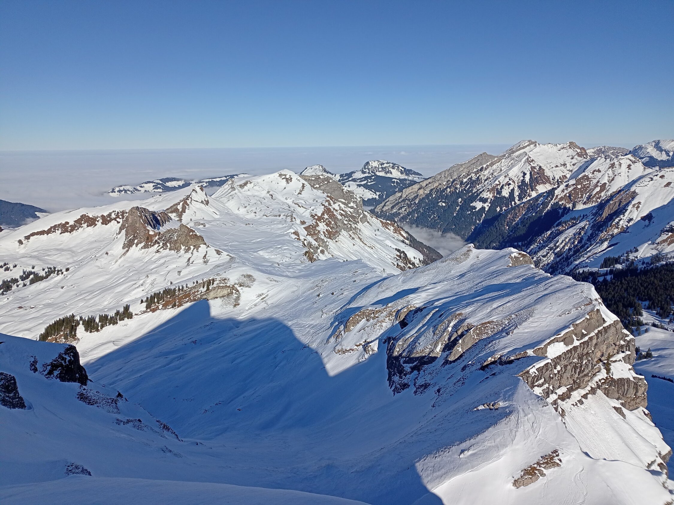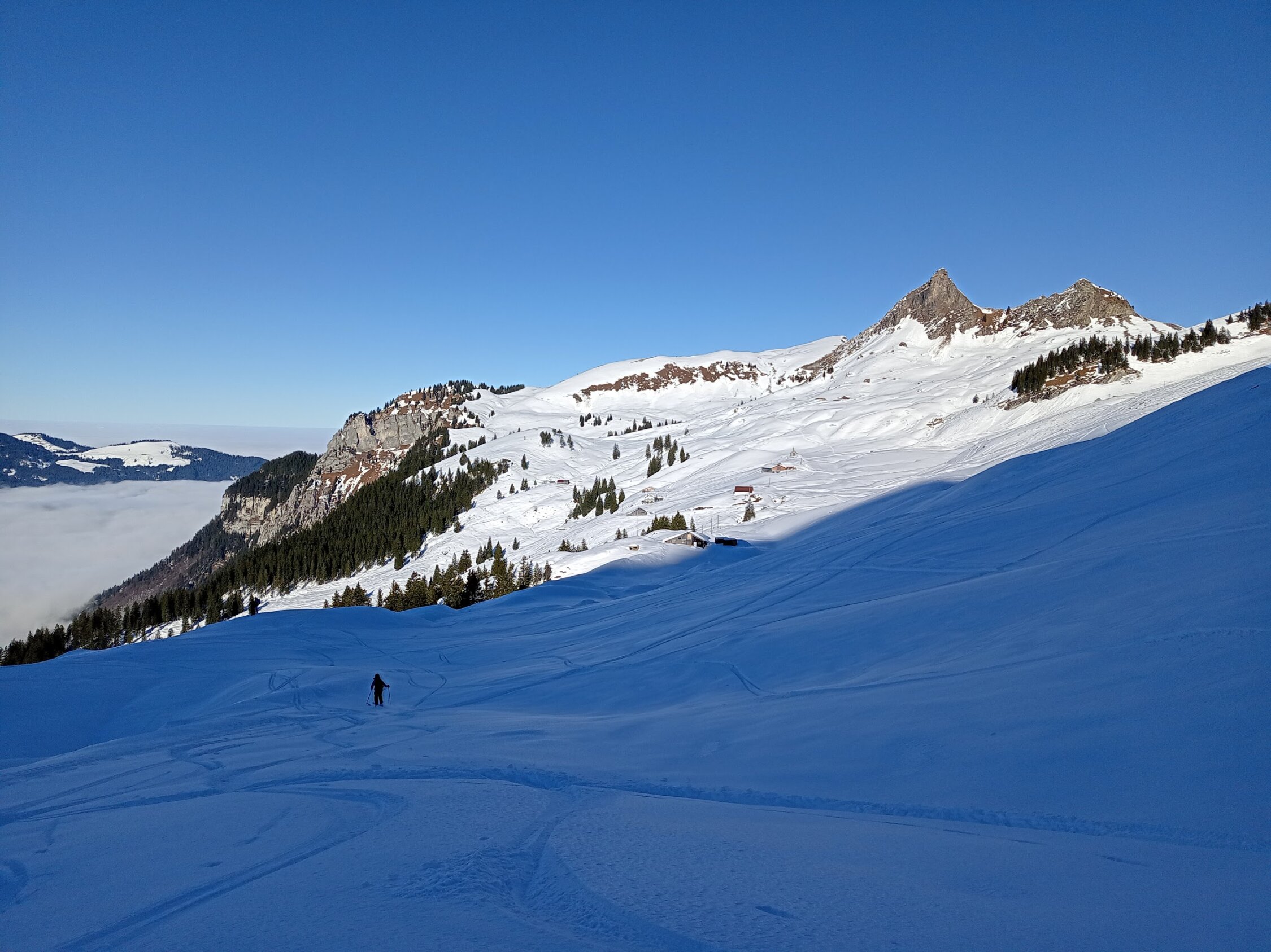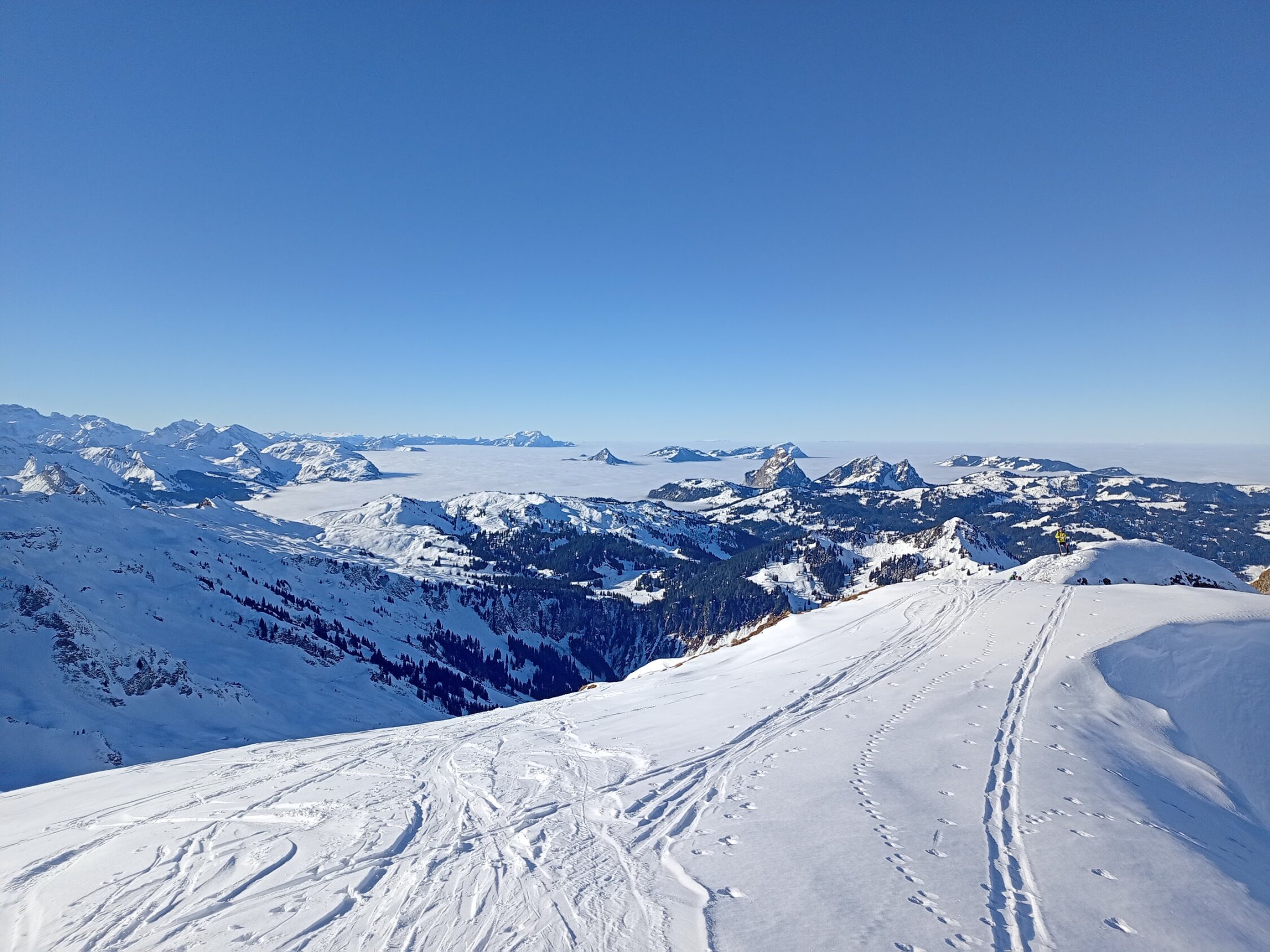 Gut gespurt bis Twäriberg und genügend Schnee ohne Steinkontakt bis zum Gipfel.