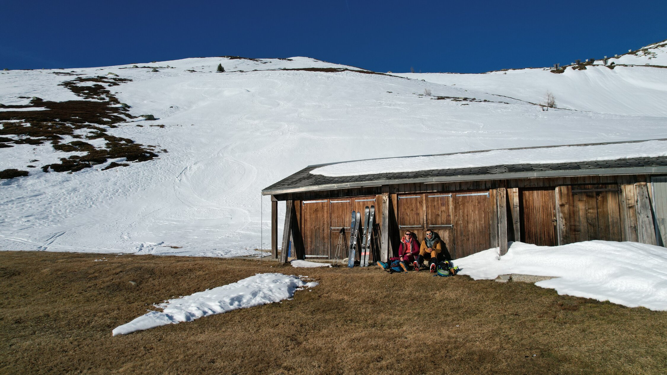 perfektes Wetter, sehr wenige Leute auf der Tour, was will man mehr?! Ach ja, guten Schnee…..! Der ist leider nur mässig lässig. Es hat wenig Schnee im Gebiet und der, der es hat, viel verblasen. Trotzdem haben wir einige Hänge gefunden, :-). Südseitig schon wie im Frühling, Sulz, den Rest mit Deckel.