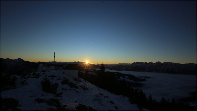 Abgesehen von den nicht so guten Bedingungentoller Morgen mit Sonnenaufgang am Gipfel und zweitem Frühstück hinter dem warmen Ofen.