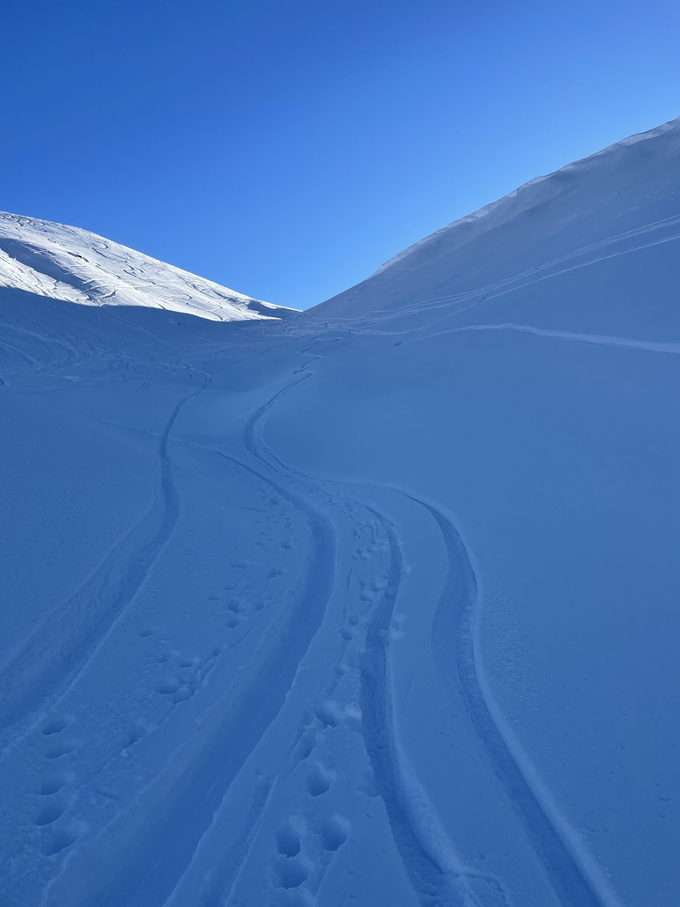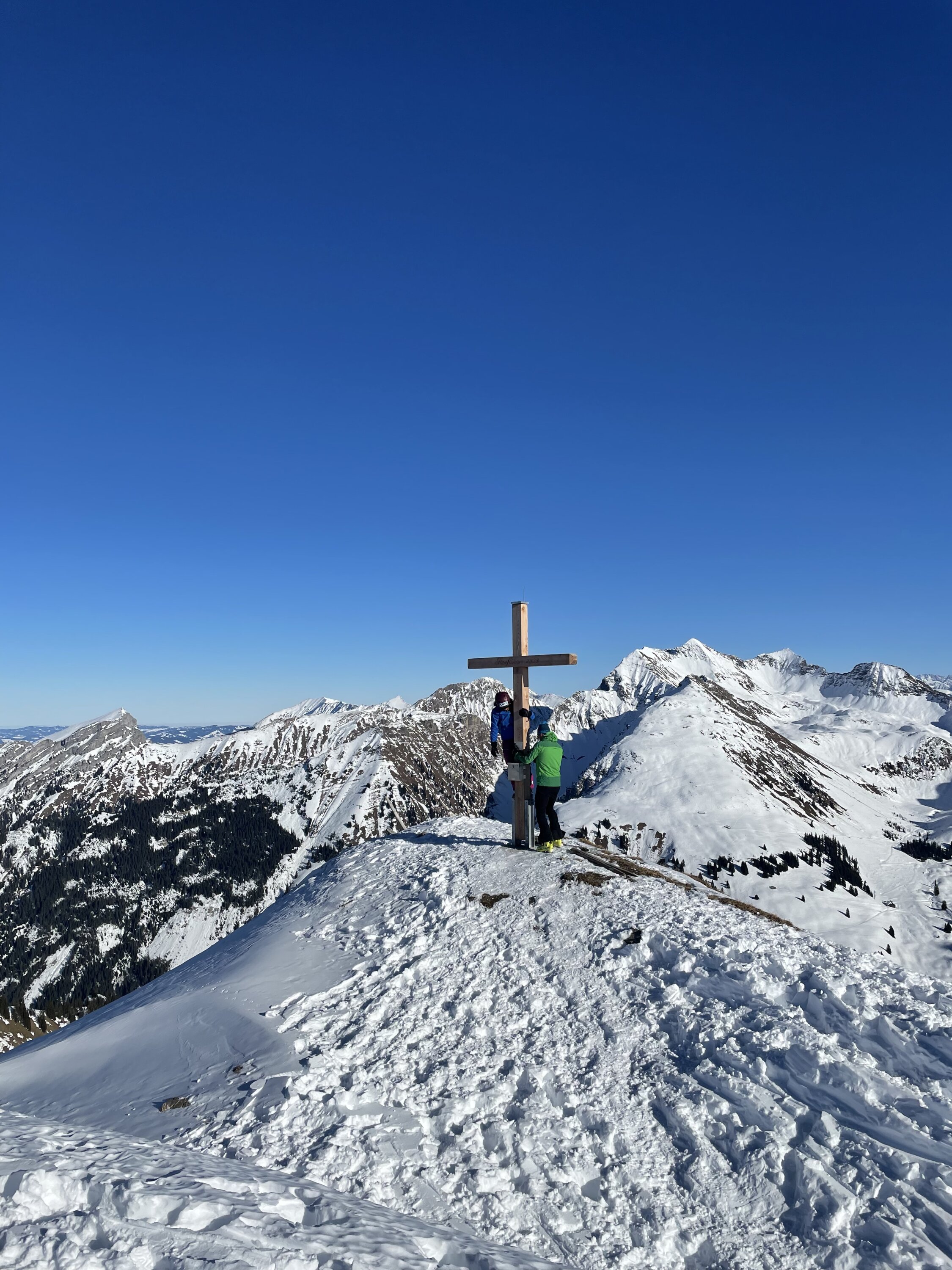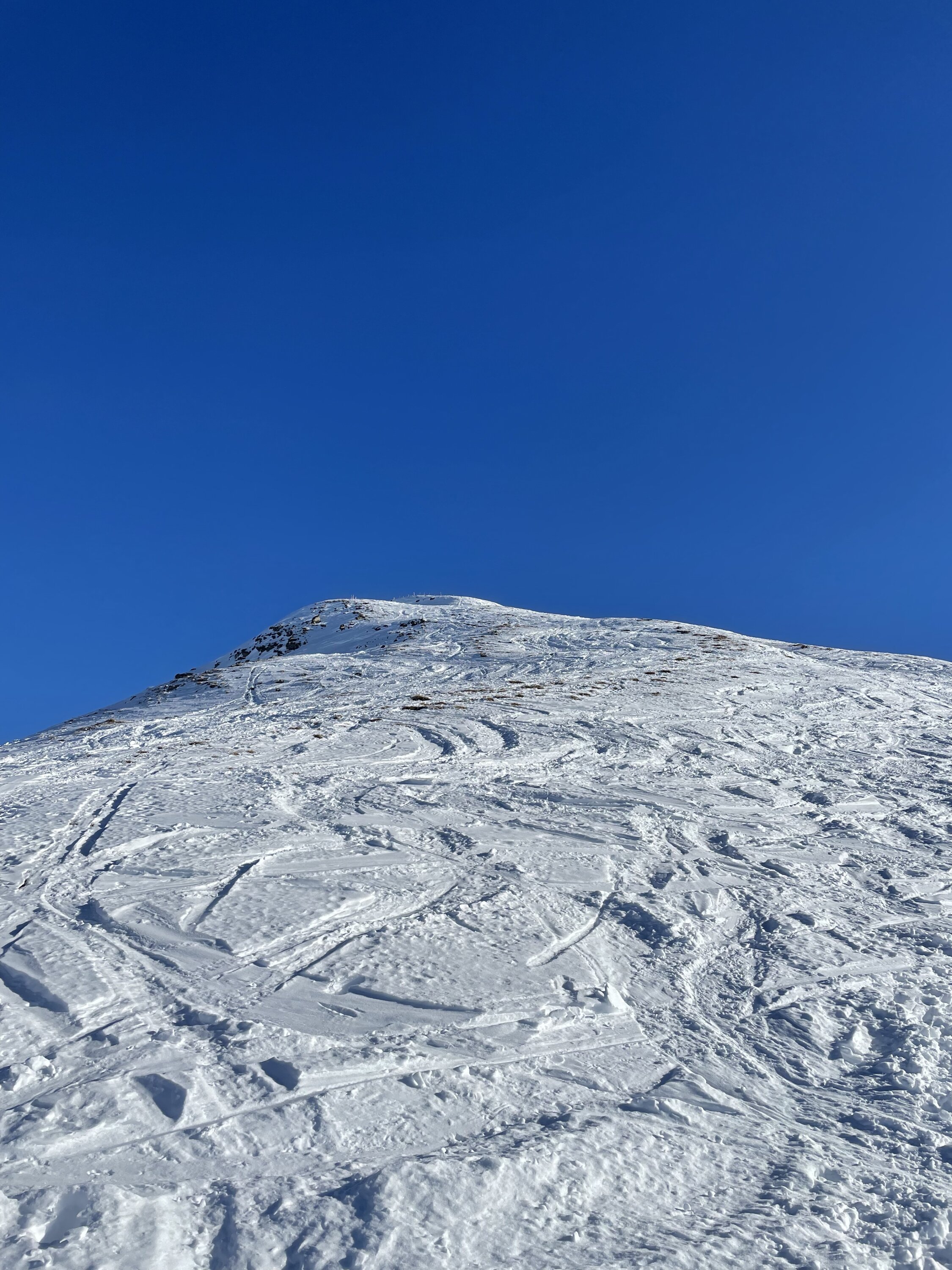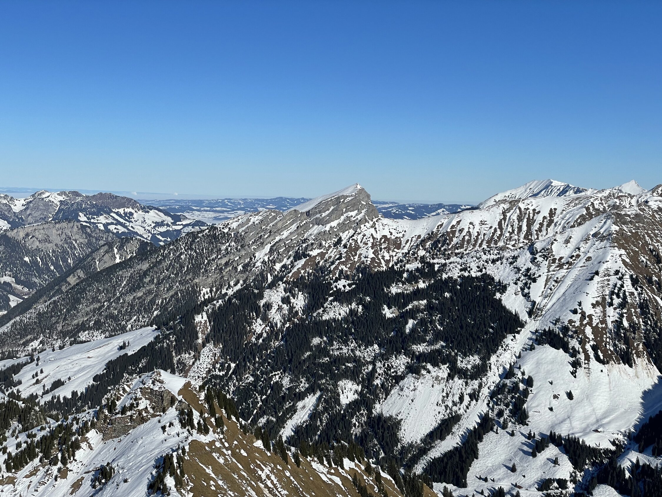 Glanzwetter und ein gut gefüllter Parkplatz liessen viel Volk erwarten. Zu meiner Überraschung traf ich aber unterwegs nicht viele Leute an. Erst in Gipfelnähe kamen dann einige herunter und oben waren wir ungefähr 10 Personen. Sehr angenehm. Oben windstill und nicht kalt. Die Abfahrt war dann im Gipfelhang soso lala, halt zerfahren oder gegen das Färmeltal hin gedeckelt. Ab der Furgg dann aber schöner Pulver und sogar noch Platz für eigene Schwünge. Weiter unten die Alpstrasse problemlos zum Fahren, der letzte Hang wiederum flotter Pulver. Erstaunlich, wie sich der gehalten hat.