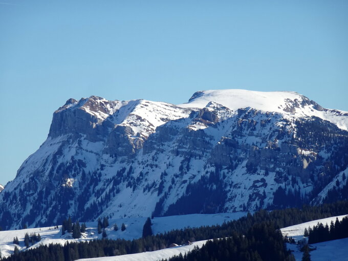 Route gespurt. Im Steilhang zum Alpberg hat es viel Schnee abgelagert. Die Spur wurde durch die gestrigen Absteiger (ohne Schneeschuhe) total durchlöchert was den Aufstieg auf Schneeschuhen erschwerte. Musste die Spur ausbessern. Im Wald, bei wenigem Schnee, ist die Spur gut . Ab der Blueme sind alle Spuren sehr gut und in gutem Zustand.