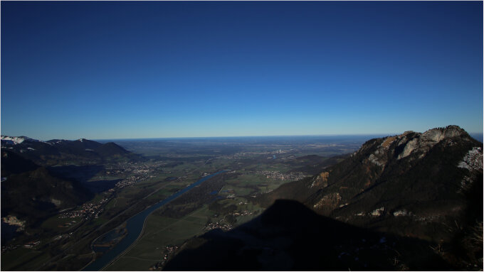 Blick in die Runde: Der Schnee wird schnell weniger untenm im Inntal ist alles grün.