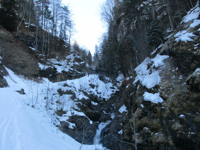 Auch wenn viele Bereiche in diesem S-exponierten Anstieg schon ausgeapert waren, kam man dennoch auf Schnee sowohl hoch, als auch runter. Allerdings wird sich das bei Ausbleiben von Neuschneezuwachs wohl bald ändern.