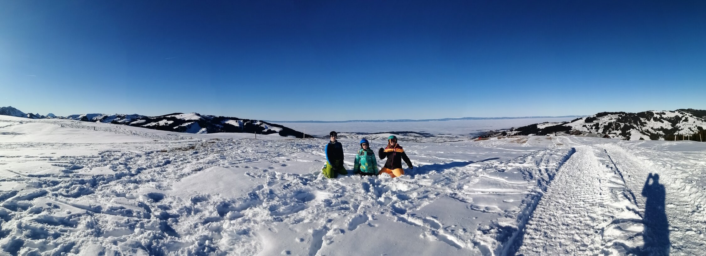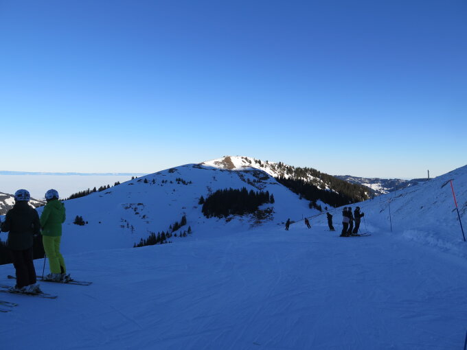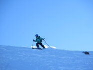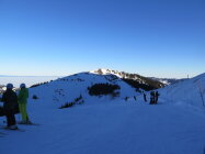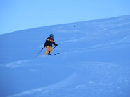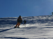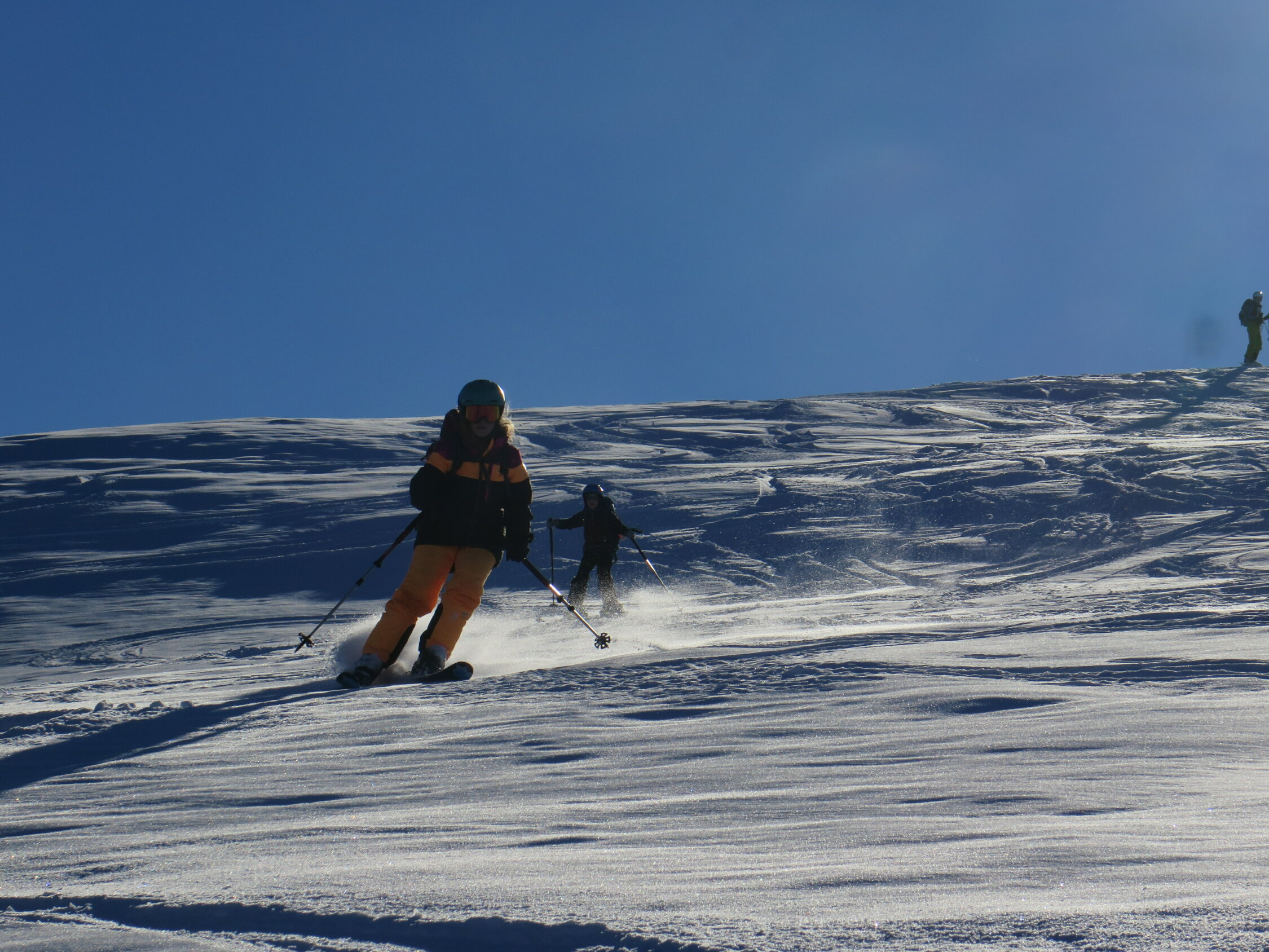 Wetter Windstill, ab und zu schwach windig. In der Sonne recht warm. Im Schatten findet man immer noch Pulverschnee. In den meisten Abfahrten ist dieser aber schon ziemlich umgepflügt.