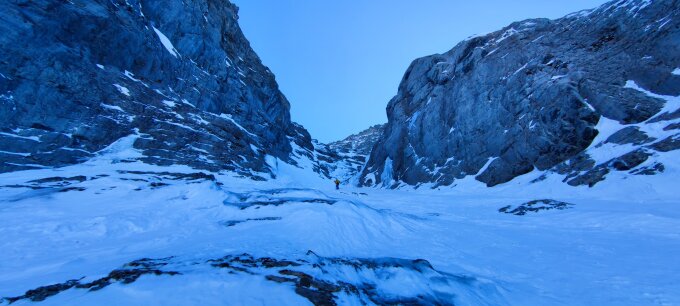 Bleibt gut, aber etwas mehr Schnee wurde im Zustieg zum Biwak nicht schaden.