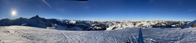 Wächte bei Pt 2058 gut zu überwinden - vom Gipfel resp. leicht nördlich auch