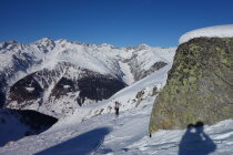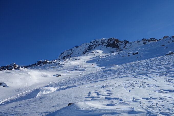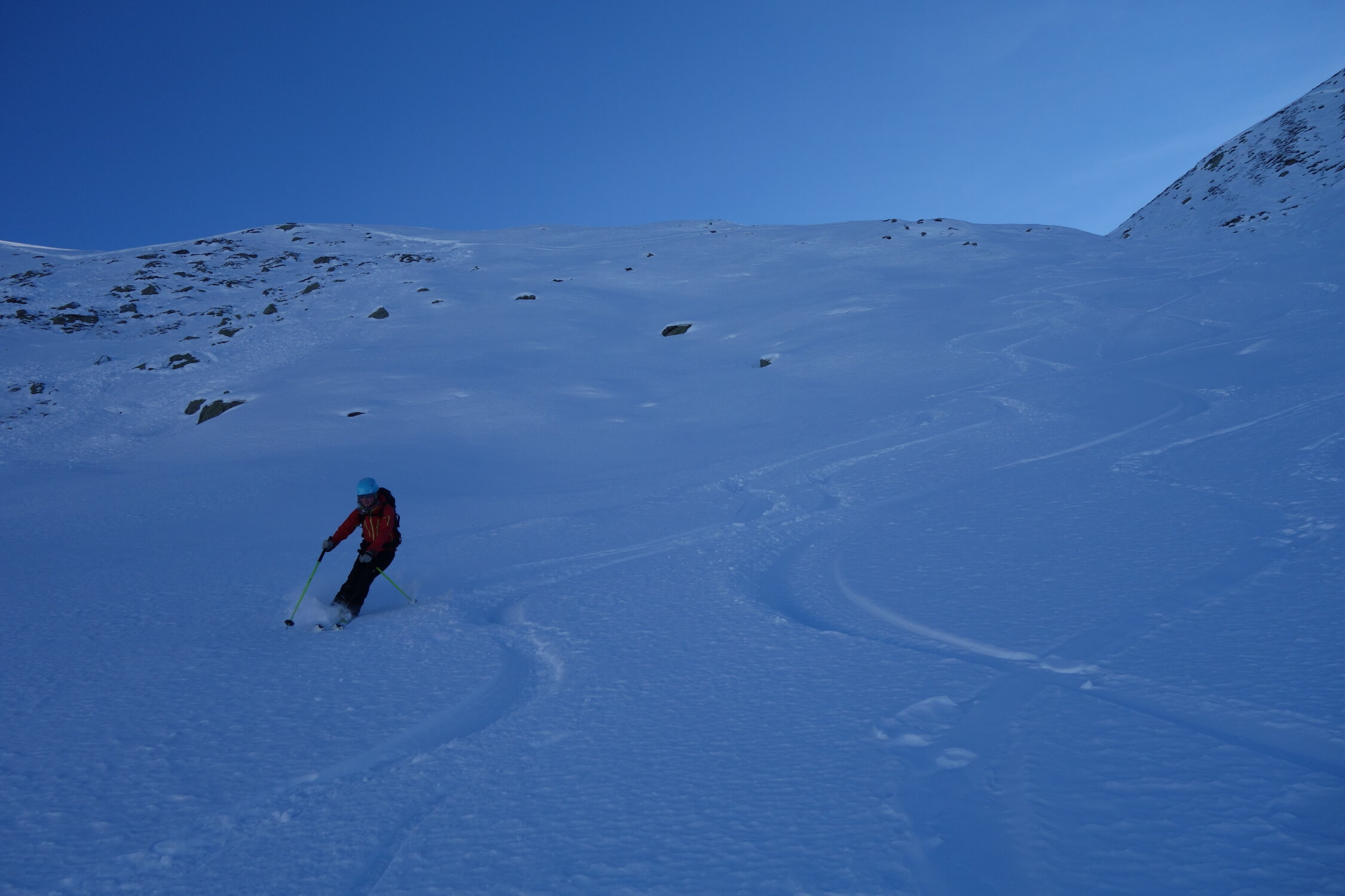Wieder ein Traumtag im Goms. Heute letzter warmer Tag, daher noch einmal die Schattseite probiert um ein bisschen Pulver zu finden. Aufstieg ab Münster ging gut durch den Wald. Nach Chäller manchmal rutschige Spur. Merci den Spurenden, die dann gegen Stockji abgebogen sind. Wir haben uns Stockji geschenkt, nachdem der Gipfelaufbau noch wenig Schnee hat. Wer hoch gegangen ist, hat die Ski rauf und runtergetragen. Zum Sädelhorn waren die Schneeverhältnisse besser, man muss aber gut auf versteckte Steine schauen. Abfahrt war eine Mischung aus Windharst und Presspulver, letzterer aber sehr gut zu fahren. Wir sind eher westlich abgefahren. Dort ist auch eine Lawine vor ein paar Tagen abgegangen, mutmasslich nachdem jemand durchgefahren ist (Spuren rein und raus).