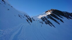 Vor dem Morgetenpass recht rutschig, aber gut gespurt.