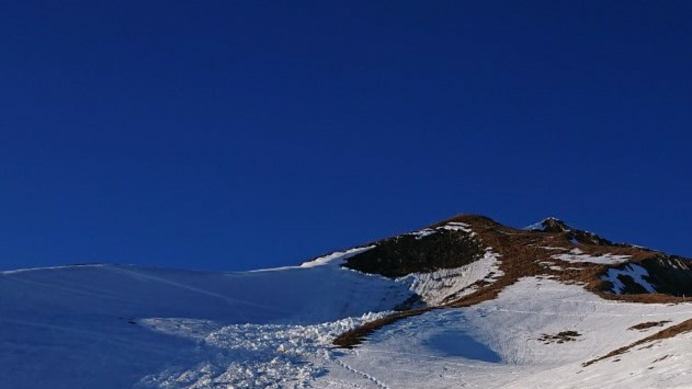 Nach dem Morgetenpass grosse Altlawine, via Gras und Gipfel umgangen.