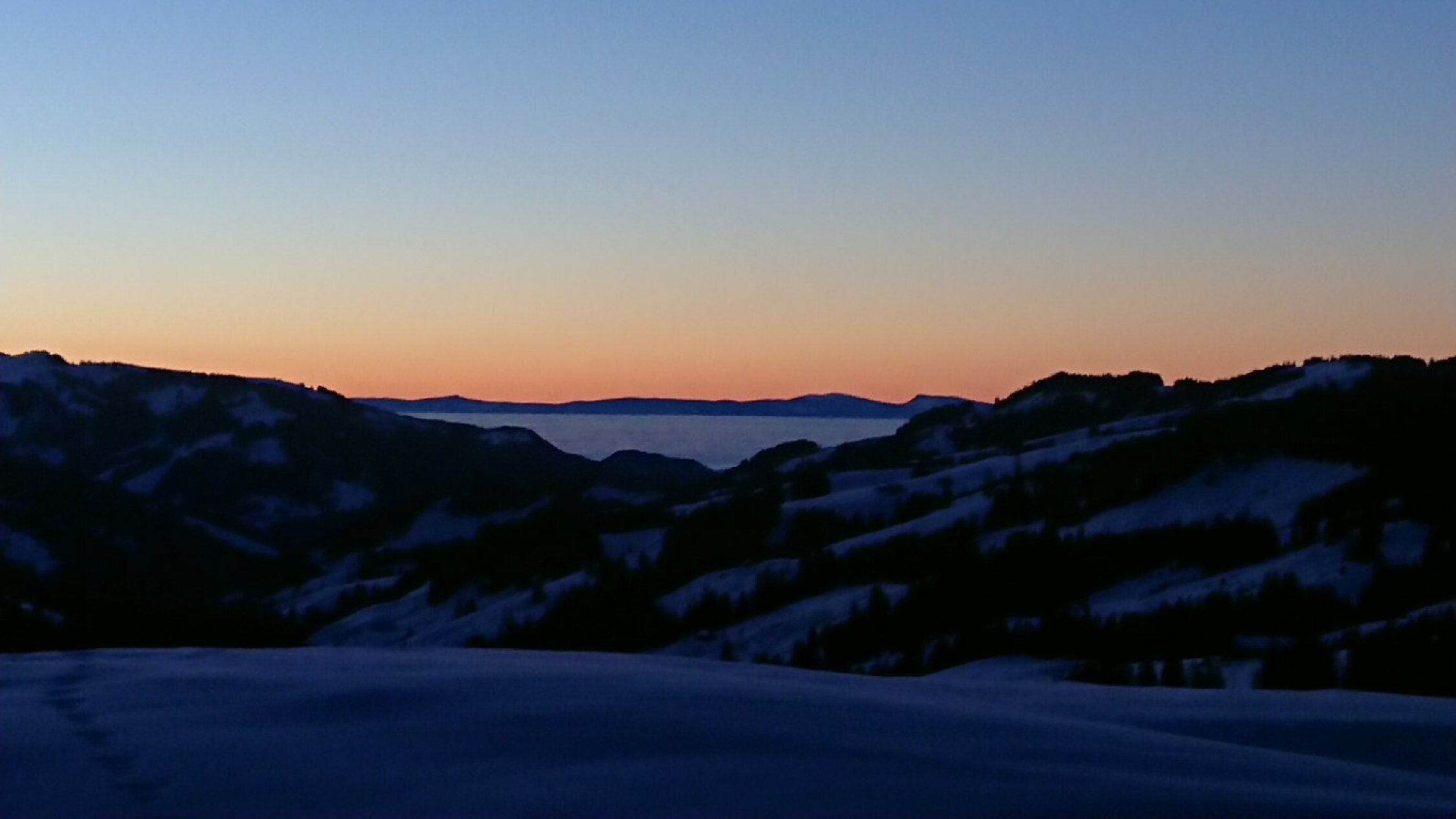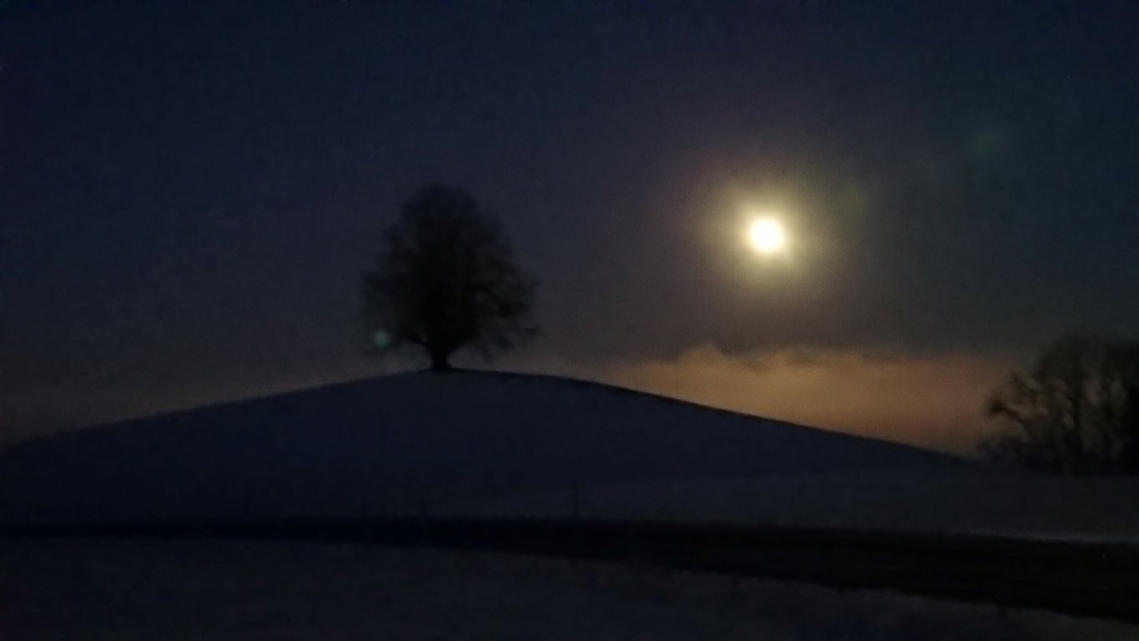 Bei Wegfahrt Vollmond über dem Nebelmeer.