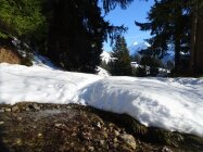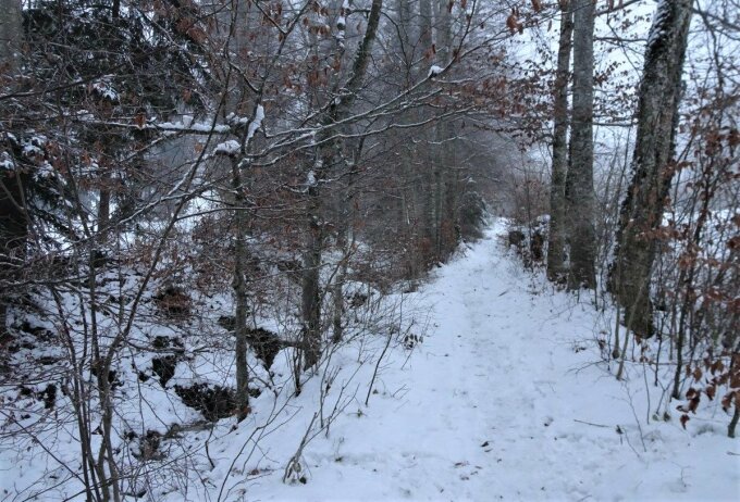 der Aufstieg durch den Chratzhaltegrabe ist zwischendurch ordeli steil und im Wald etwas vereist