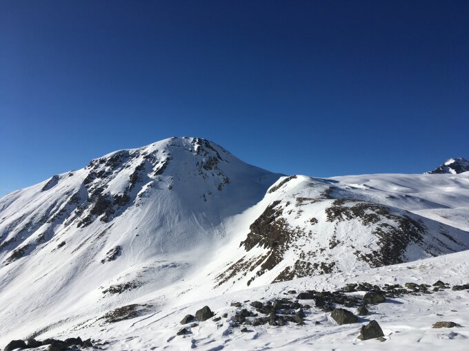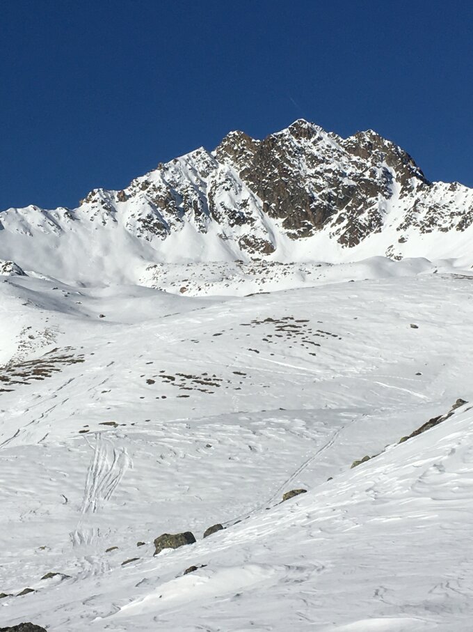 Schöne Tour mit Liftunterstützung, 1300 Höhenmeter Abfahrt! Empfehlenswert. Ein Alpinist ist mit Ski noch den Südgrat zum Piz Viroula hoch bis etwa 2975 m bis unterhalb den Felsen und zog eine perfekte Spur die Ostflanke herunter, Gratulation!