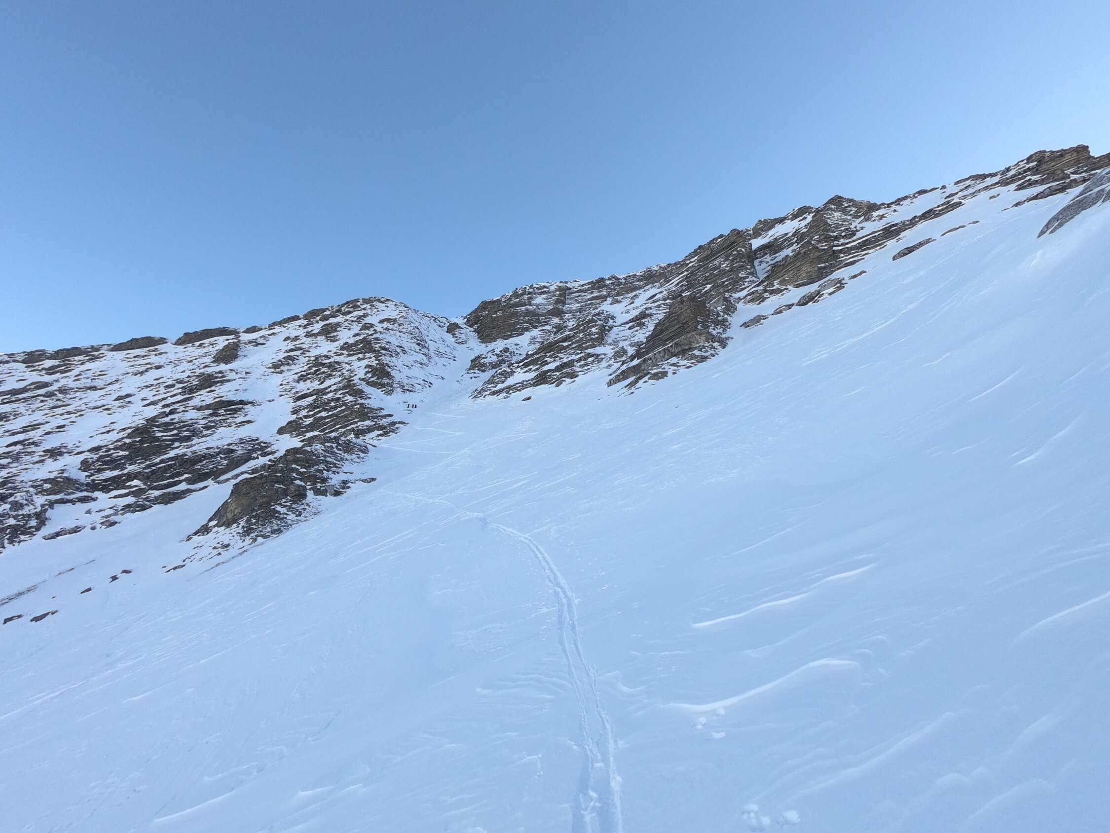 Für die Abfahr lohnt sich der Giferspitz aktuell eher nicht (Verhältnis: machbar). Es hat noch etwas wenig Schnee resp. der Schnee ist verblasen und im oberen Teil bis 2100müm Bruchharsch. Giferhüttli oder Steinmandli (wie üblich schon stark verfahren) sind skifahrerisch mit durchwegs lockerem Pulverschnee sicher lohnender (Verhältnis: gut). Aber das Gifer ist halt trotzdem ein schöner Berg:)