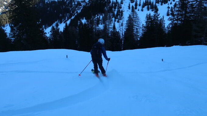 Vom Gipfel bis Rossboda Bruchharsch. Von dort durch das Sautobel Pulver.