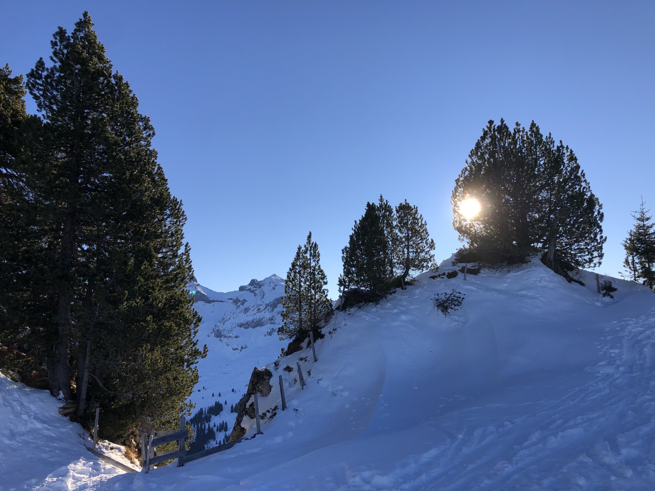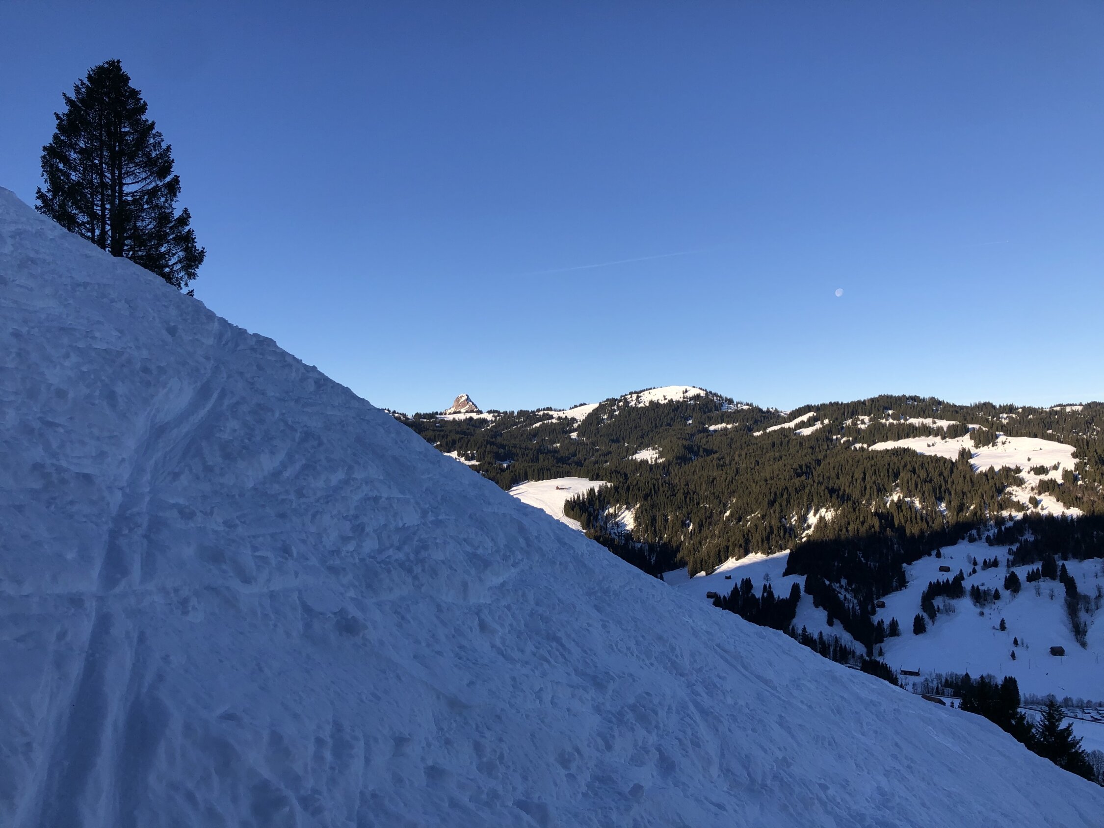 Genug Schnee. Tolles Wetter. Nach dieser langen niederschlagsfreien Periode darf man natürlich keinen Pulver mehr erwarten.