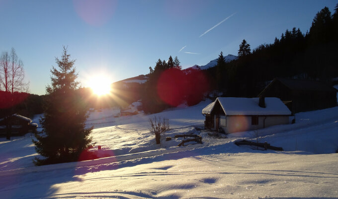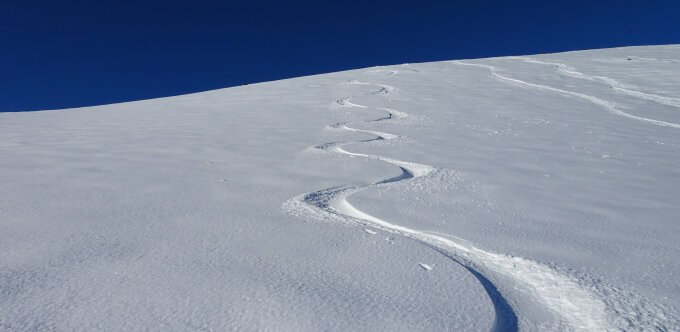 Wunderschöne Verhältnisse vom Chapfensee hinauf zum Hüeneri. Wir finden in der Abfahrt sorgar noch unverspurte Hänge und geniessen die Abfahrt zurück zum Chapfensee.