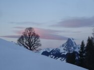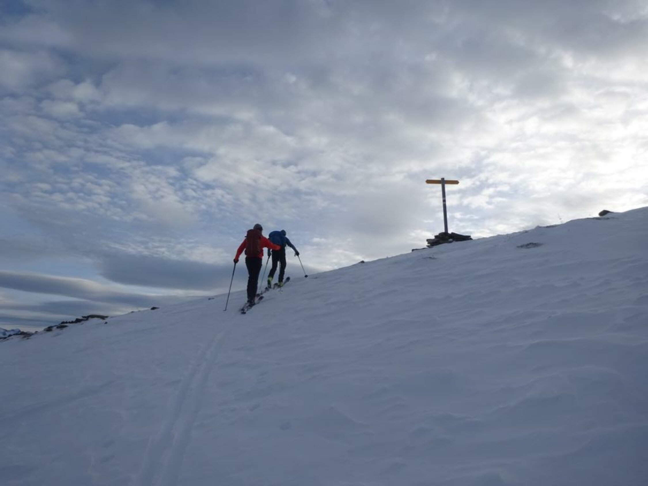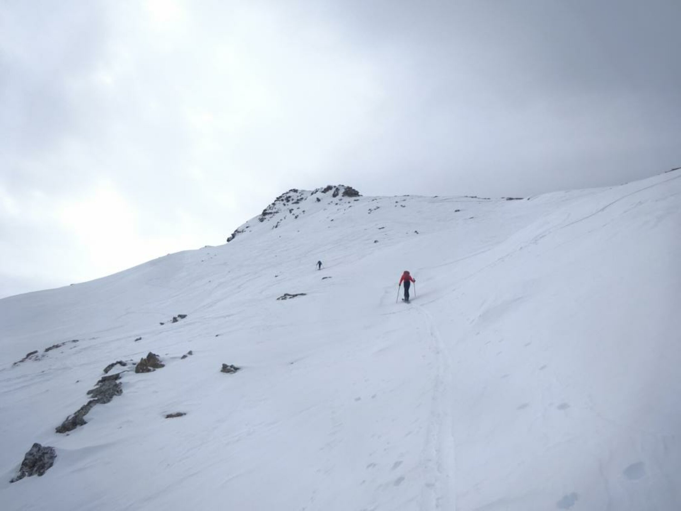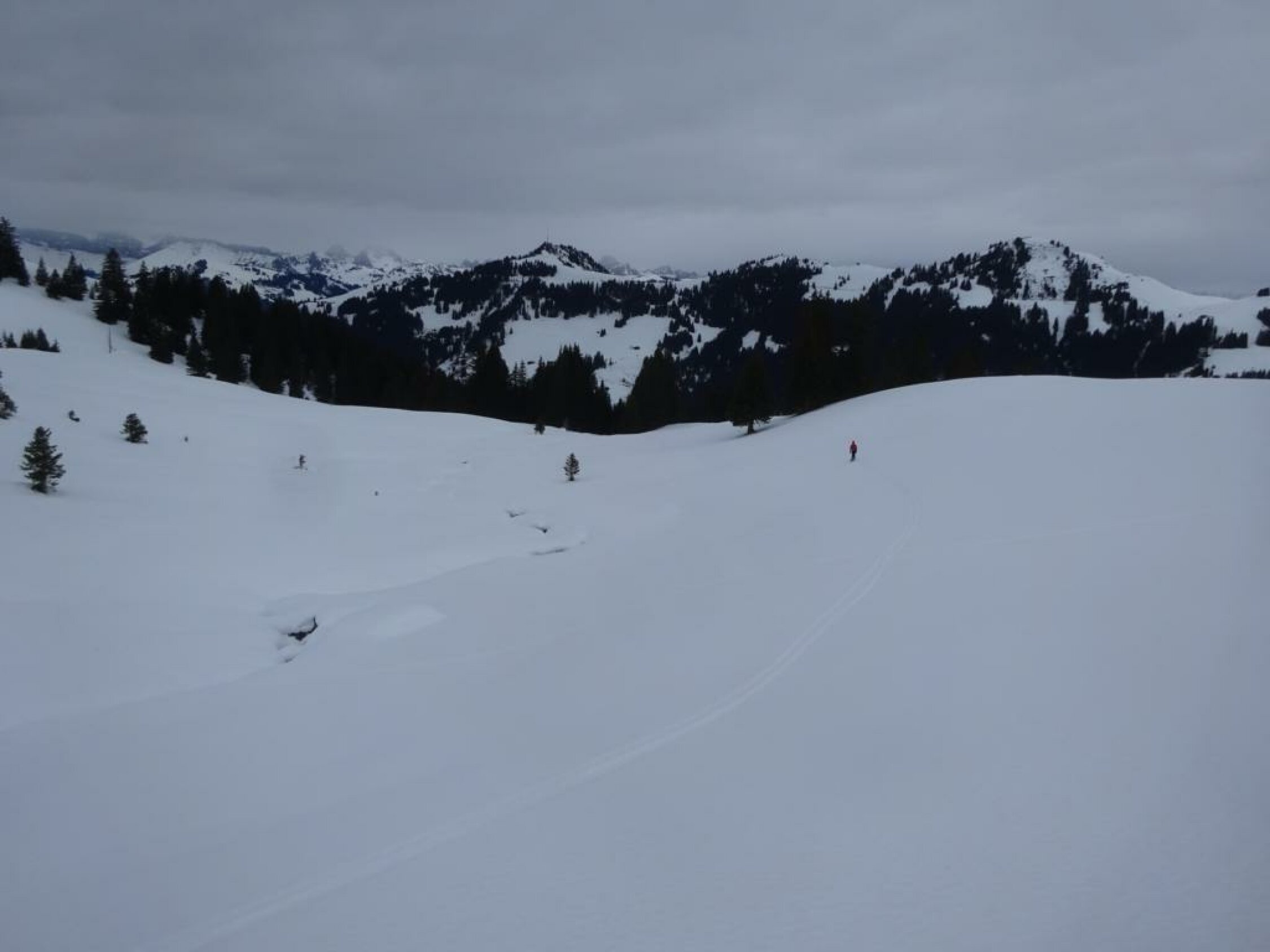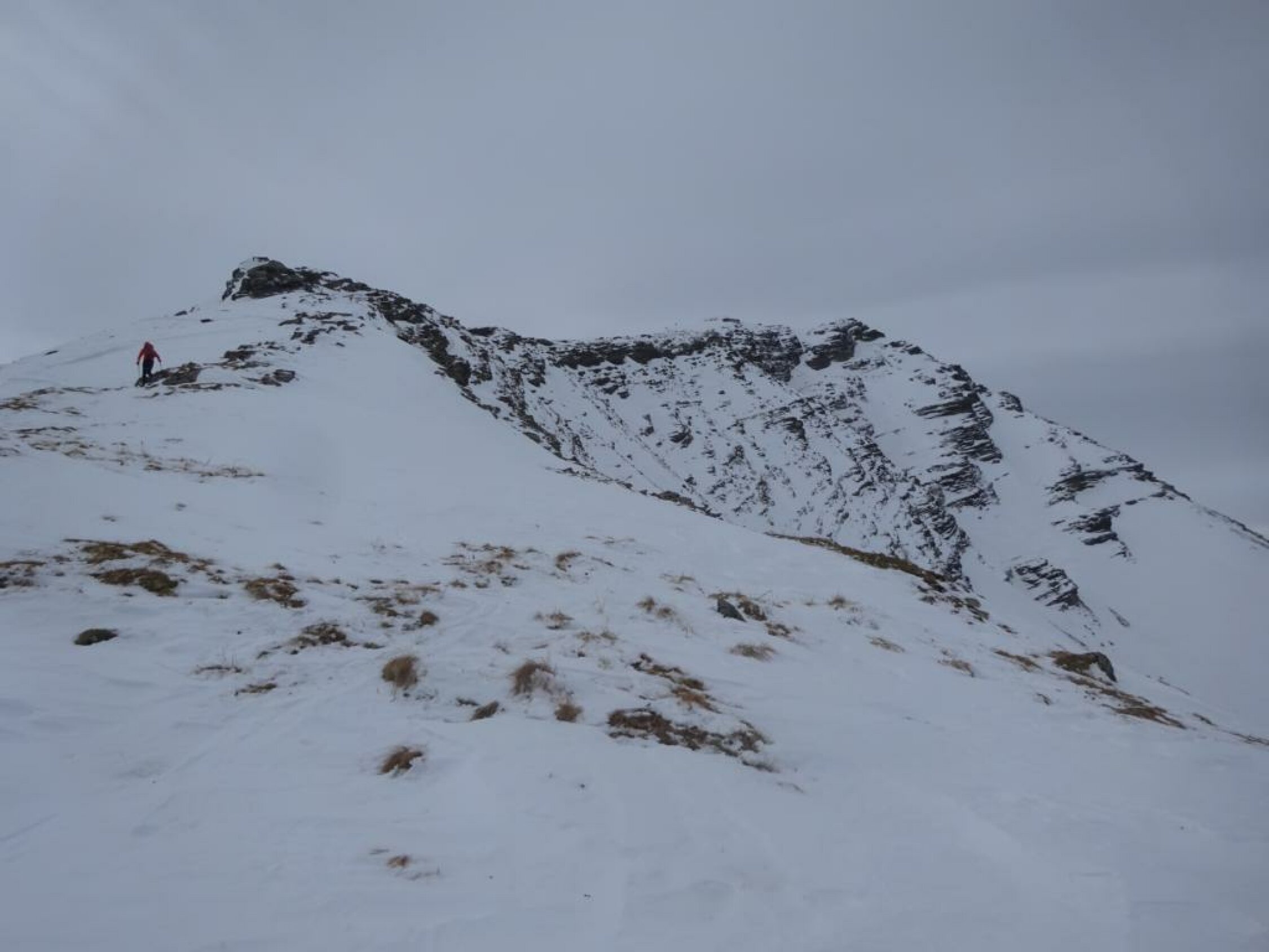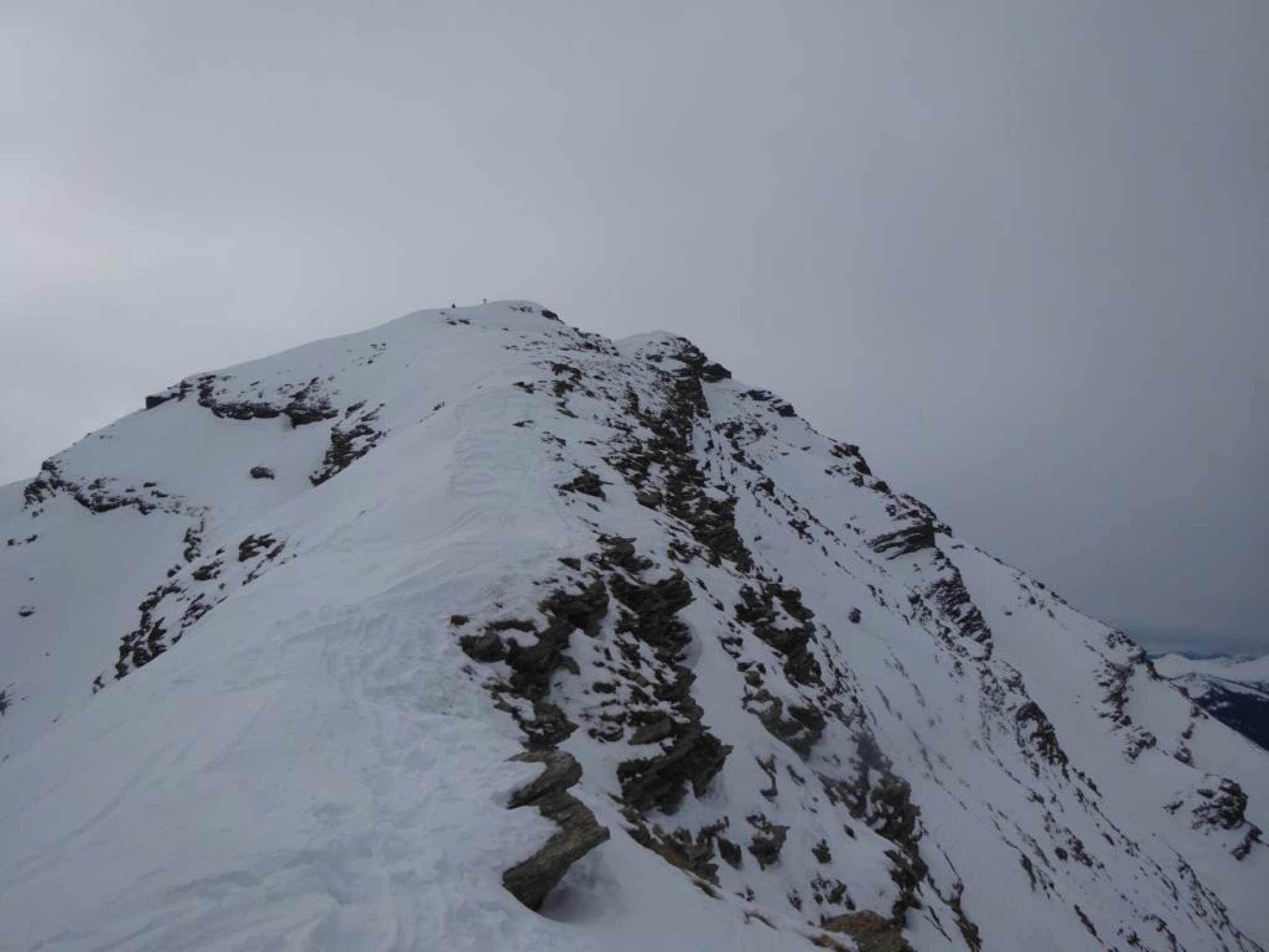 Beim Aufstieg sind wir zuerst irrtümlich richtung Bachberggrat los, mussten dann oberhalb Berzgumm relativ lang rüber auf die Normalroute traversieren. Ab dem Giferhüttli wird es steil, man kann gut in die Ostflanke ausweichen. Schee allerdings etwas abrutschend. Auf dem Grat ab Punkt 2376 ca. 10 Minuten Skitragen.