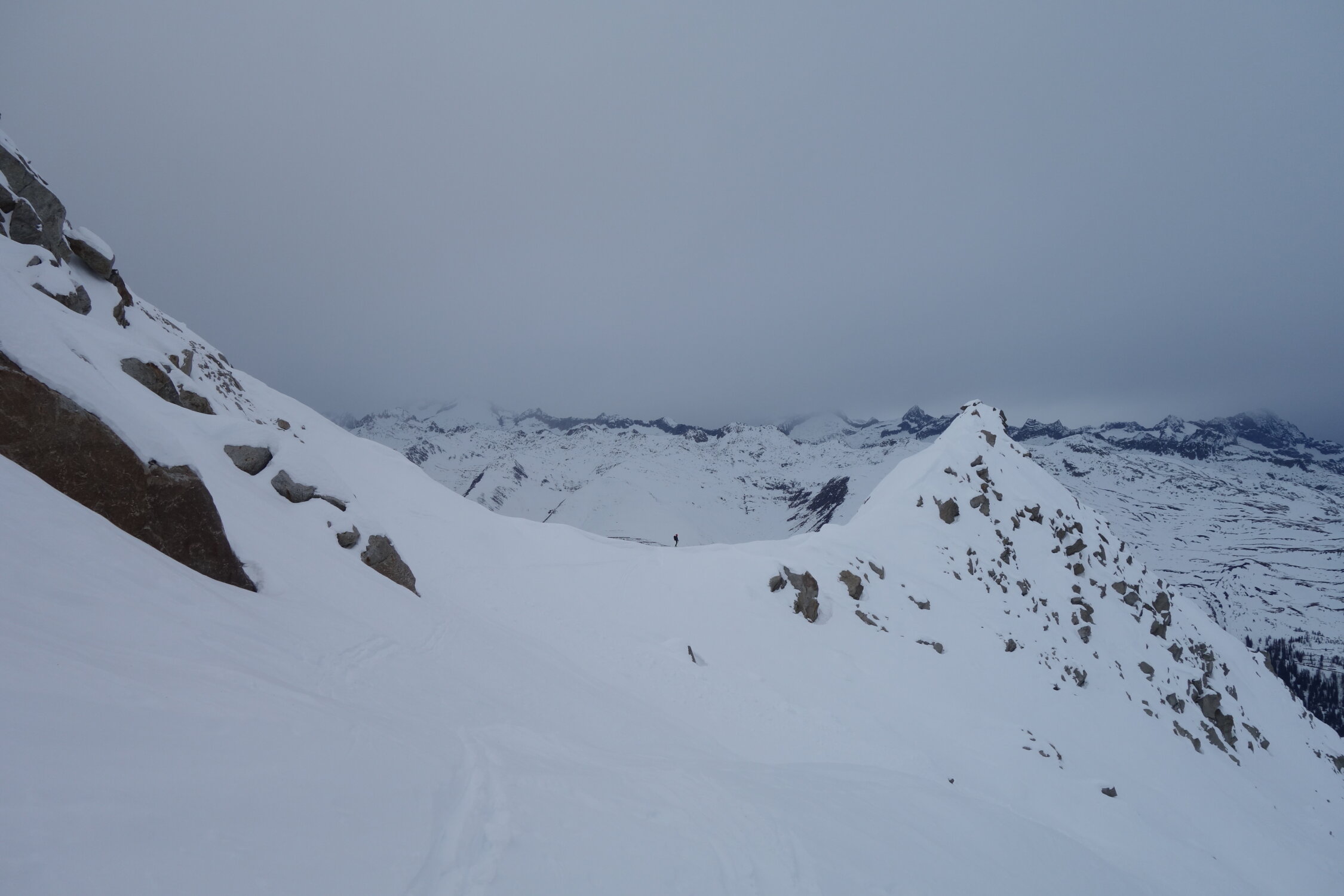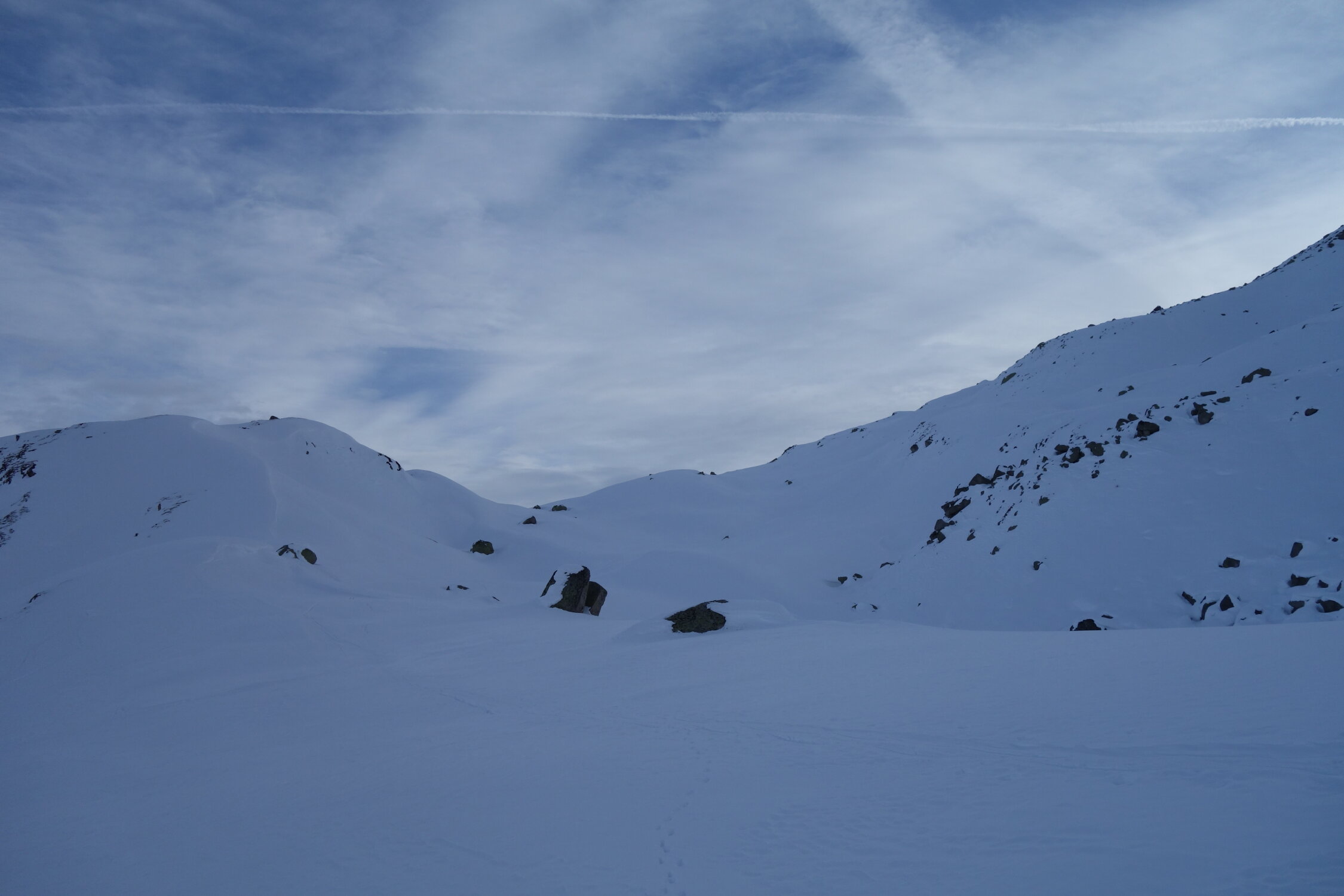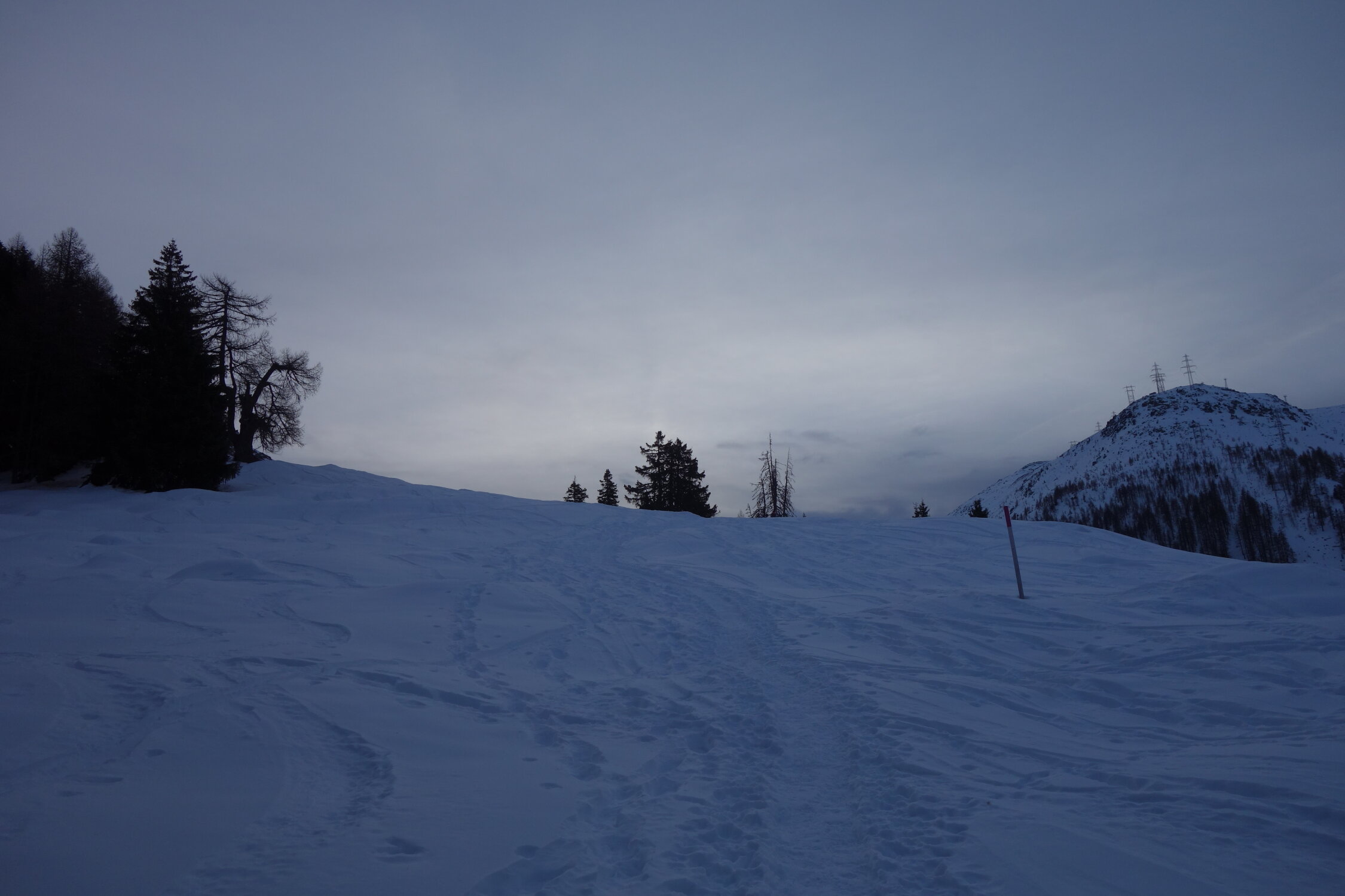 Relativ viele Spuren bis zur Handyantenne, dann wurden es weniger, Wald unten entsprechend vercharret. Gute Spuranlage, oben teils abgeblasen, wenig Schnee. Die Flanke ab dem Skidepot hatte relativ wenig Schnee und die losen Blöcke sahen nicht so einladend aus, daher nicht auf den Gipfel gegangen, besser wäre wohl direkt vom Sattel zwischen P. 2665 und Gipfel raufzugehen. Abfahrt nach Oberwald, ab 2200 m guter Pulverschnee.