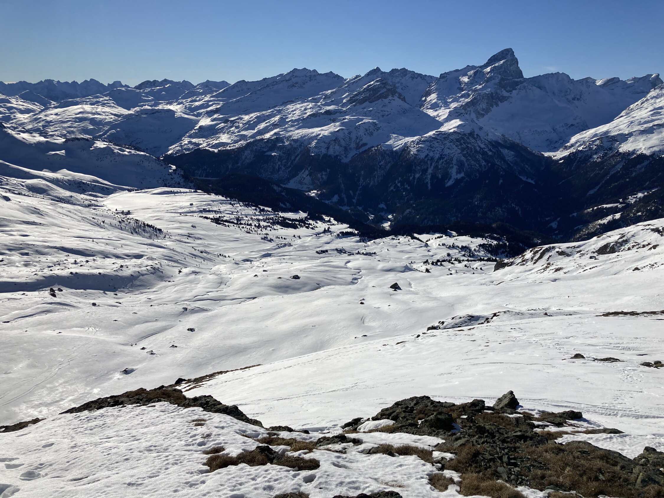 Tour mit Abfahrtsvariante über Piz Colm ins Val d'Err nach Tinizong. Ab Postautohaltestelle Sur liegt genügend Schnee. Die Tour ist gut eingespurt. Im Val d'Err gab es noch schönen Pulverschnee.