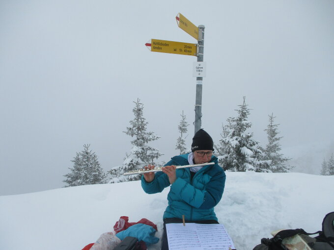 Zwei Tourenskifahrer begegneten uns bei der Vorder Höchi, ein Schneeschuhwanderer kam uns im Gipfelbereich entgegen, als wir von diesem abstiegen, zwei weitere Personen konnten wir auf dem gebahnten Winterwanderweg von Arvenbühl her aus der Ferne erkennen. Das war´s dann auch schon für den ganzen Tag.