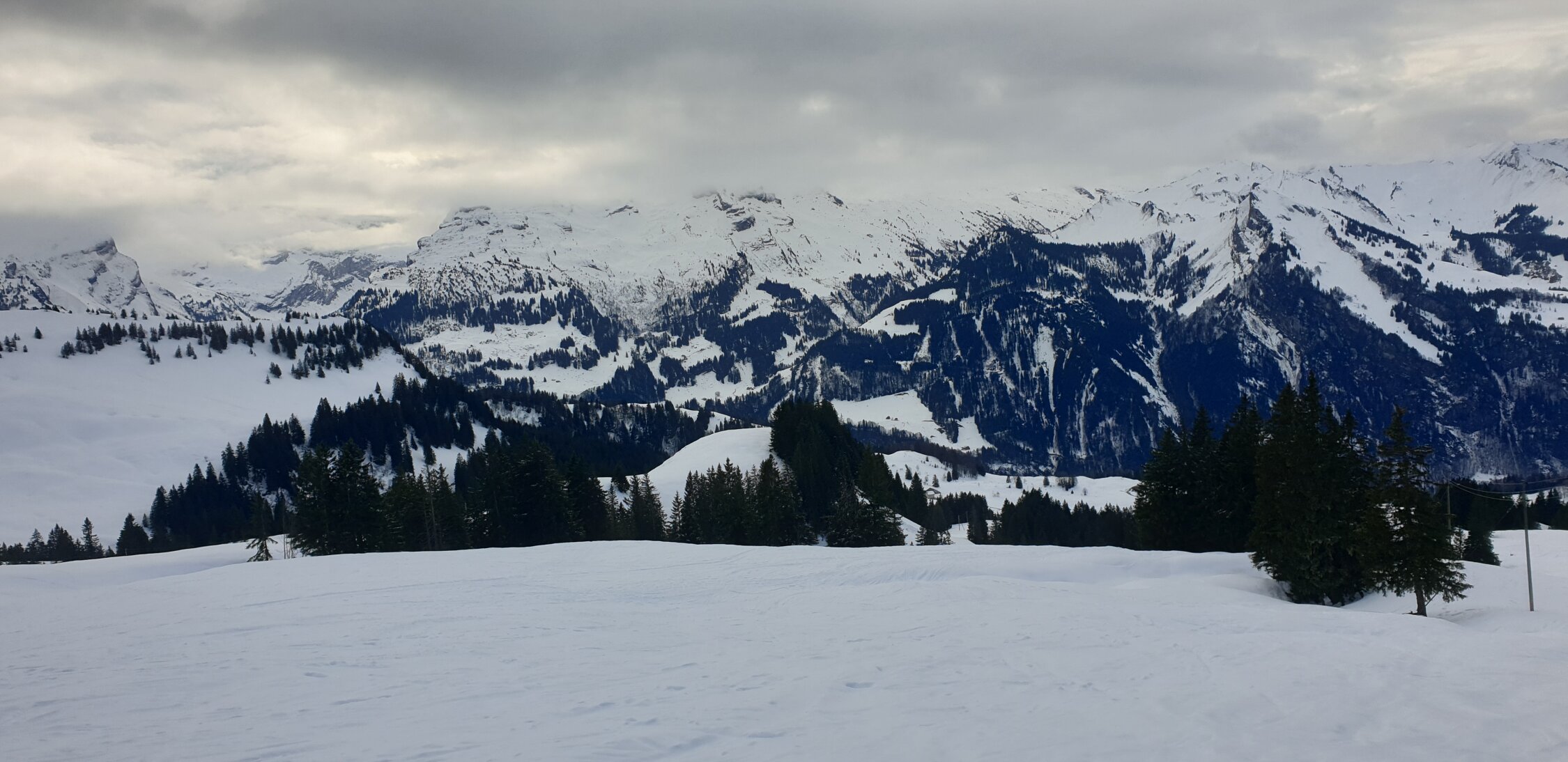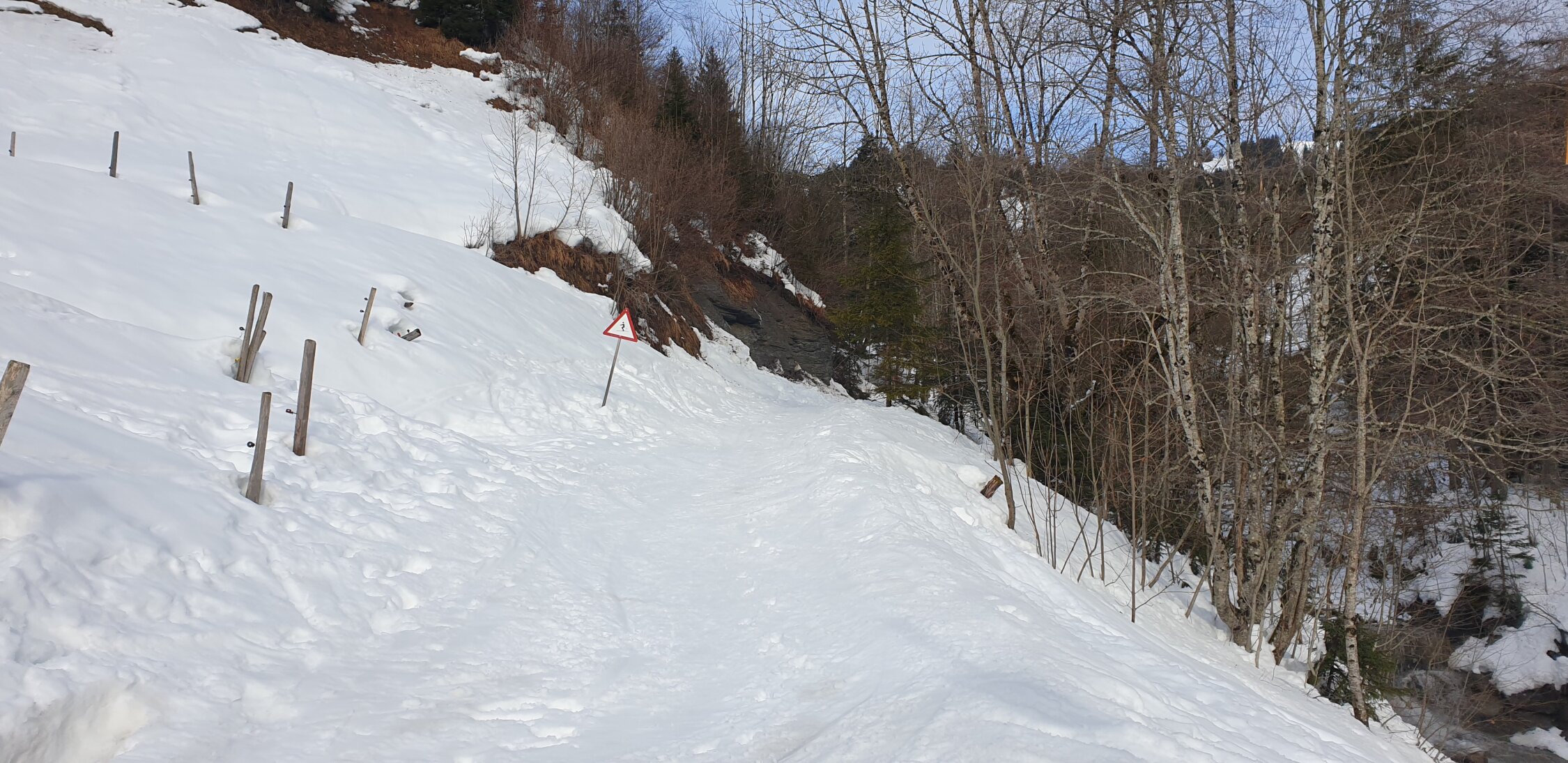Heute Regen bis 1600 Meter, die Verhältnisse neben der Abfahrtspiste IIlgau- Spirstock nicht gerade die besten, aber immer noch genug Schnee auf der ganzen Route, als Notlösung aber ganz oke.