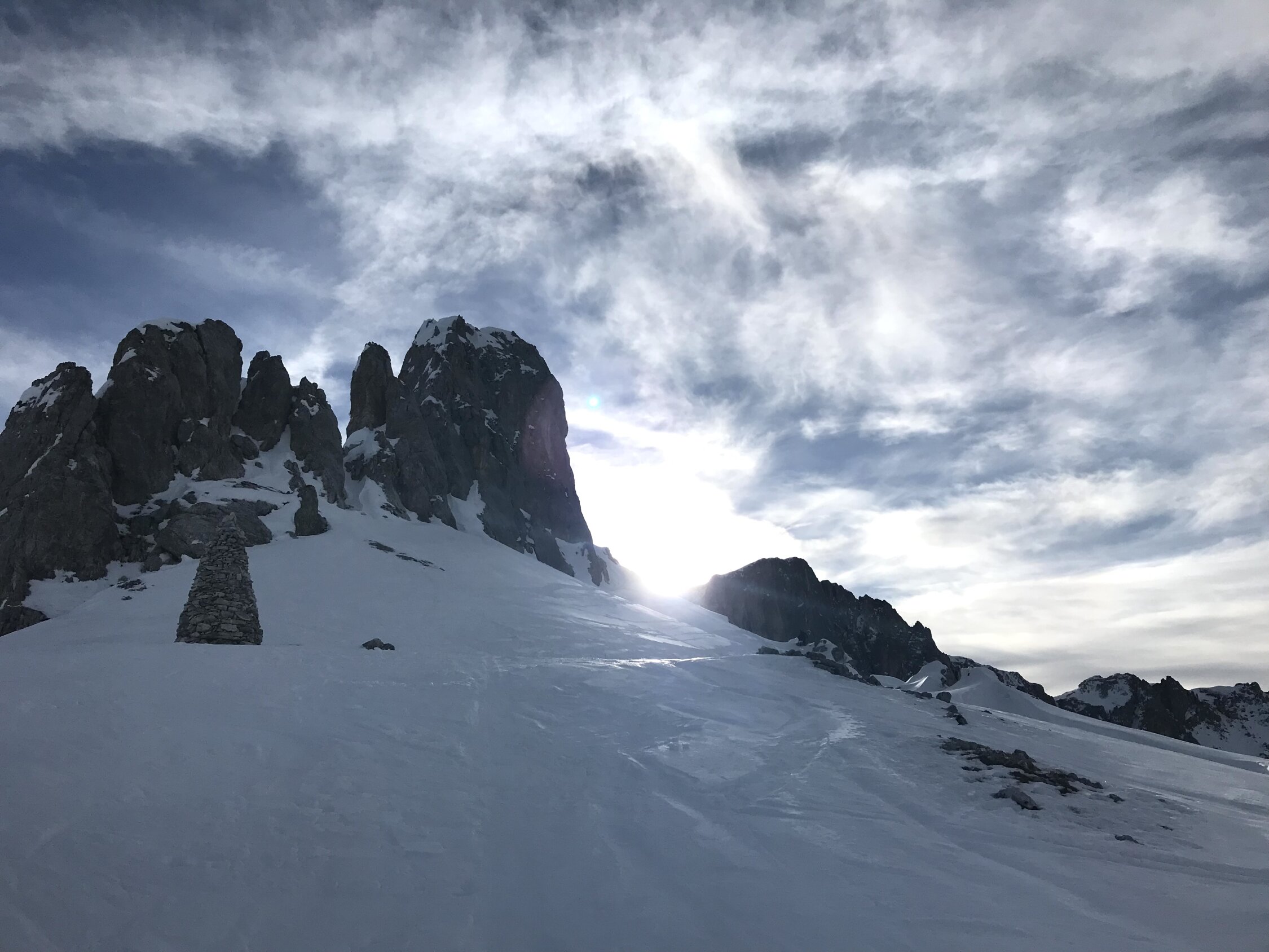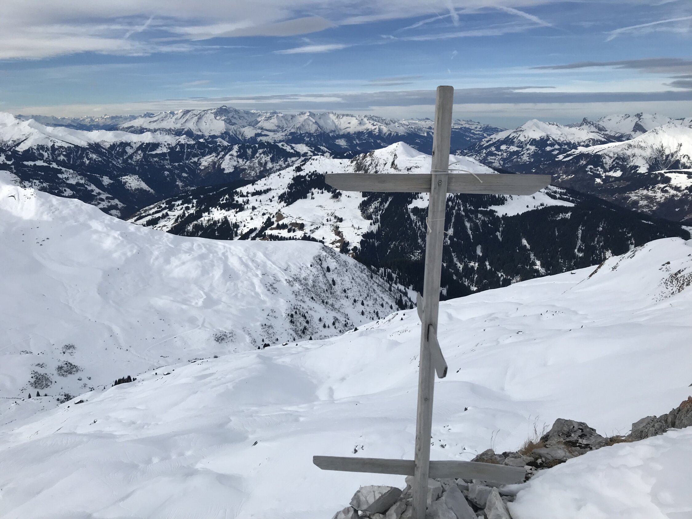 Hart und bruchharstig. Aufstieg ging ohne Harsteisen bis Skidepot. Fussanstieg zum Gipfel tlw. vereist, am Gratzum Kreuz nicht neben der Spur gehen, sonst geht’s grundlos durch die Wächte hinab.