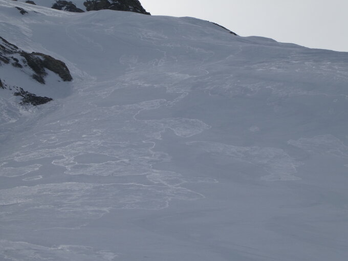 Eisig, abgeblasen und sehr wenig Schnee. Vereinzelt Tragepassagen