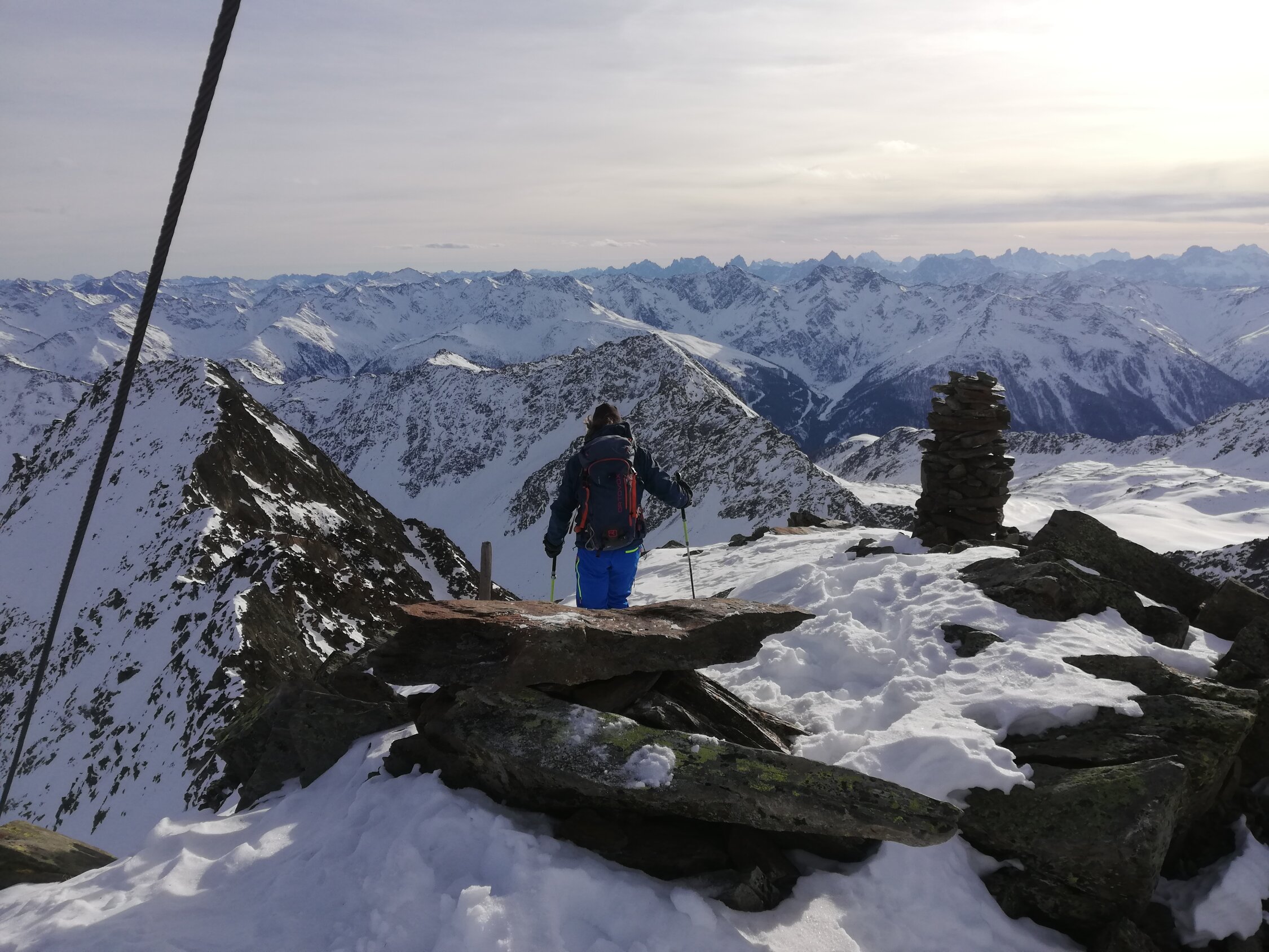 Aufstieg weiter zuerst in westliche Richtung dann in nördliche Richtung mit Blick zum Gipfel. Im Nacken meist den Gross Glockner. Vom Gipfel wunderbare Sicht zu den Dolomiten, Gross Glockner und natürlich in die Venediger Gruppe.