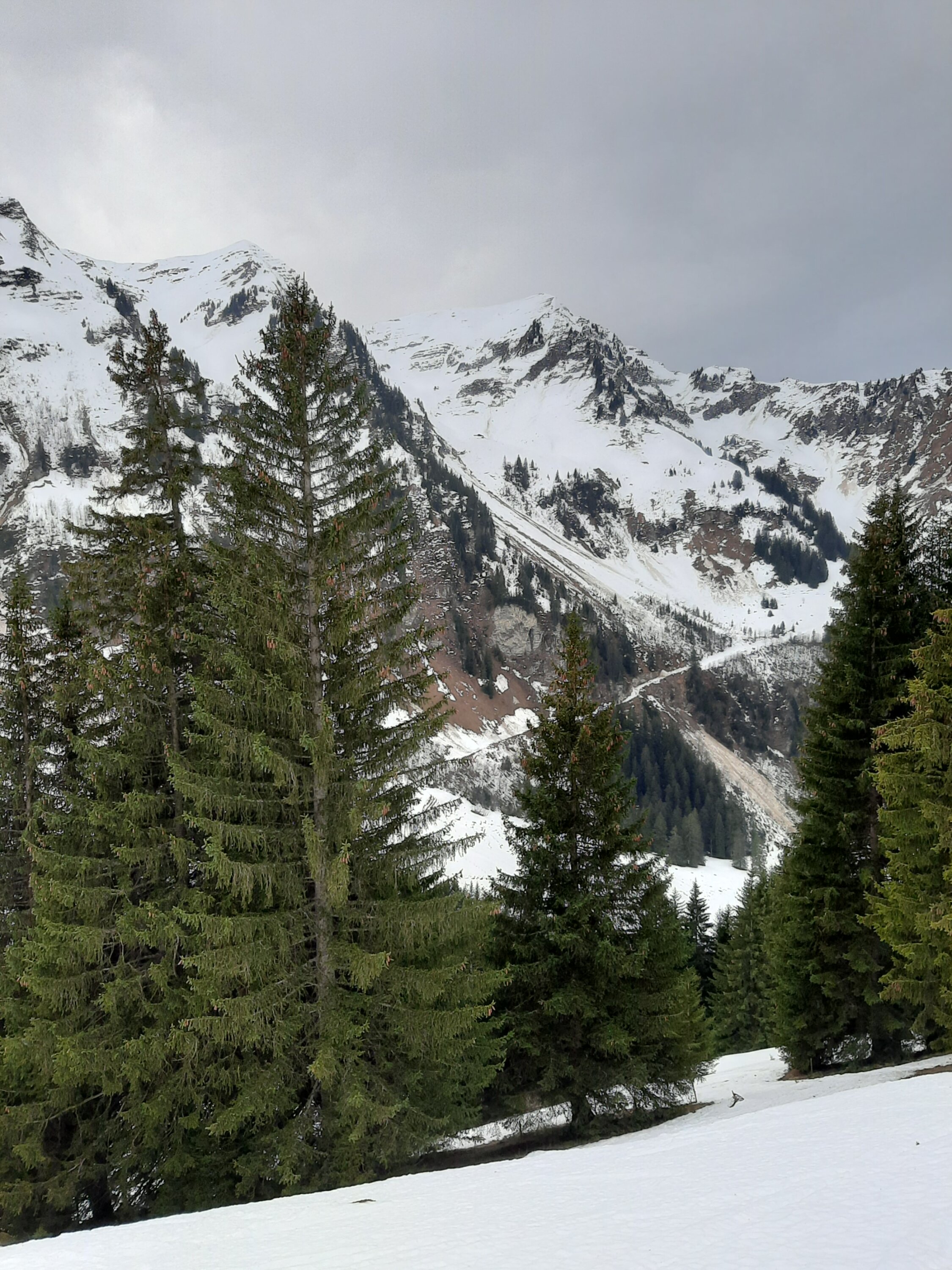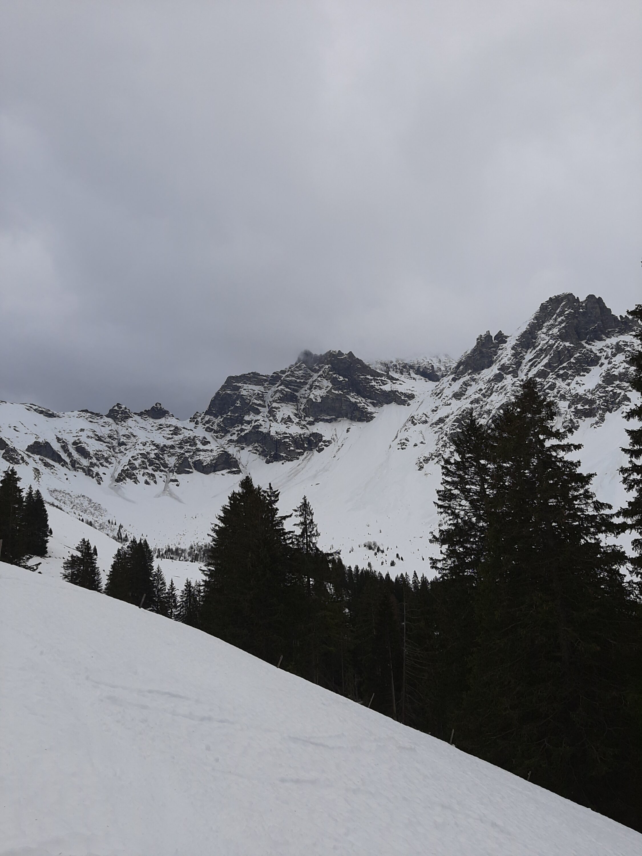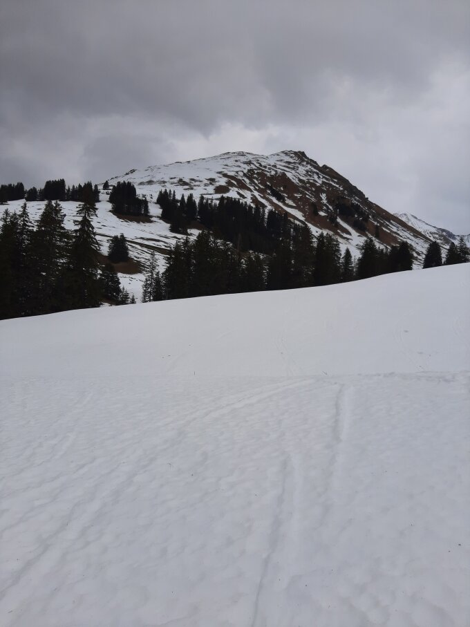 Im Aufstieg direkt in Richtung Mittelberg müssen die Skis auf dem Wanderweg im Wald ca. 150Hm getragen werden. Geht aber gut.