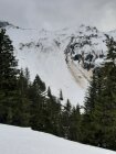 Abfahrt: Oben noch erstaunlich gut zu fahren. Ab 1900Hm bremste der feuchte Schnee immer mehr. Aber man kam runter. Abfahrt Chilei über den Bach zur Hütte 1558Hm ging recht gut. Ein kurzes Stück mussten die Skis auch hier getragen werden.