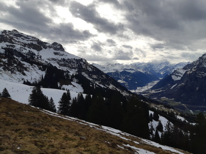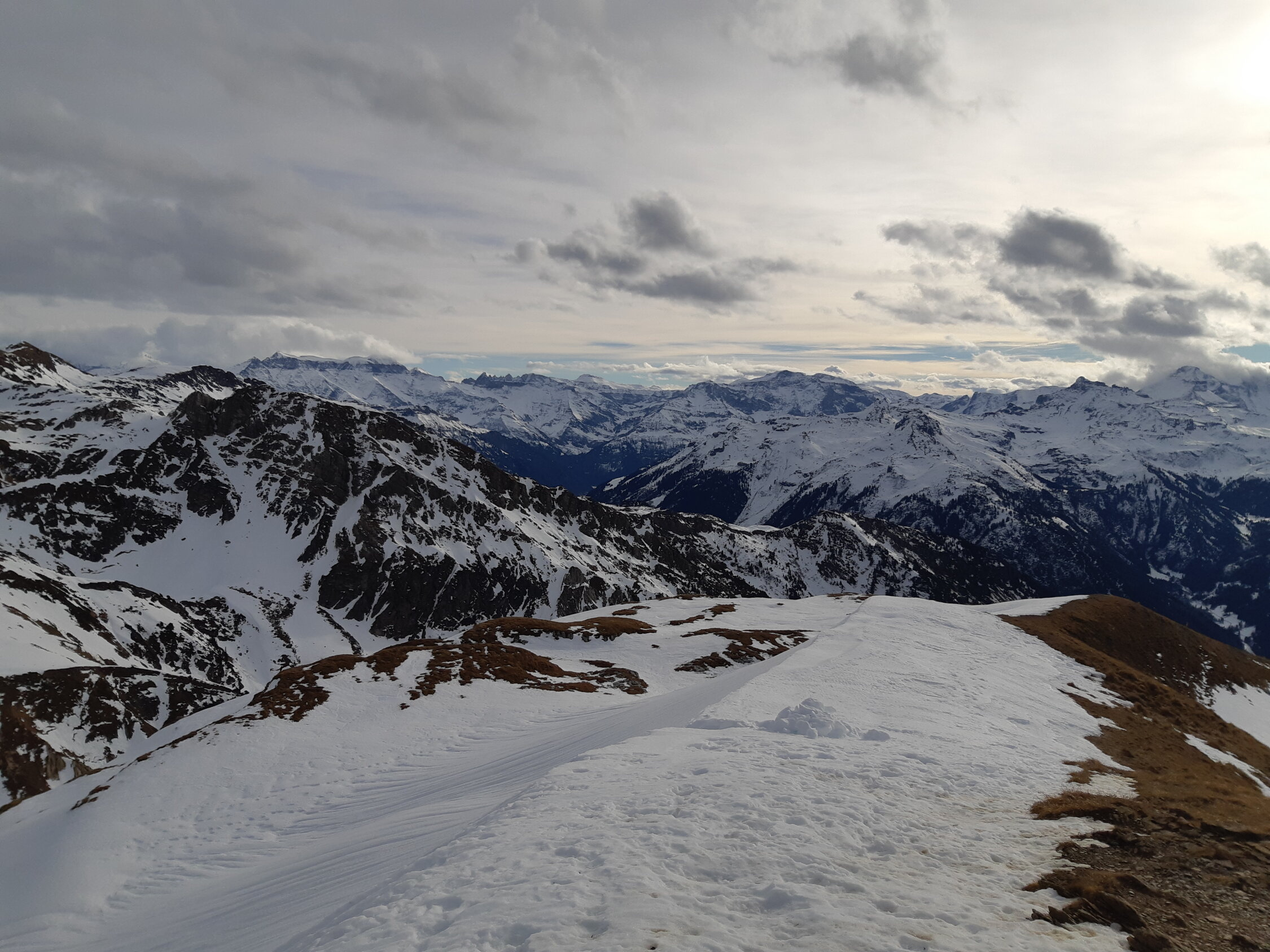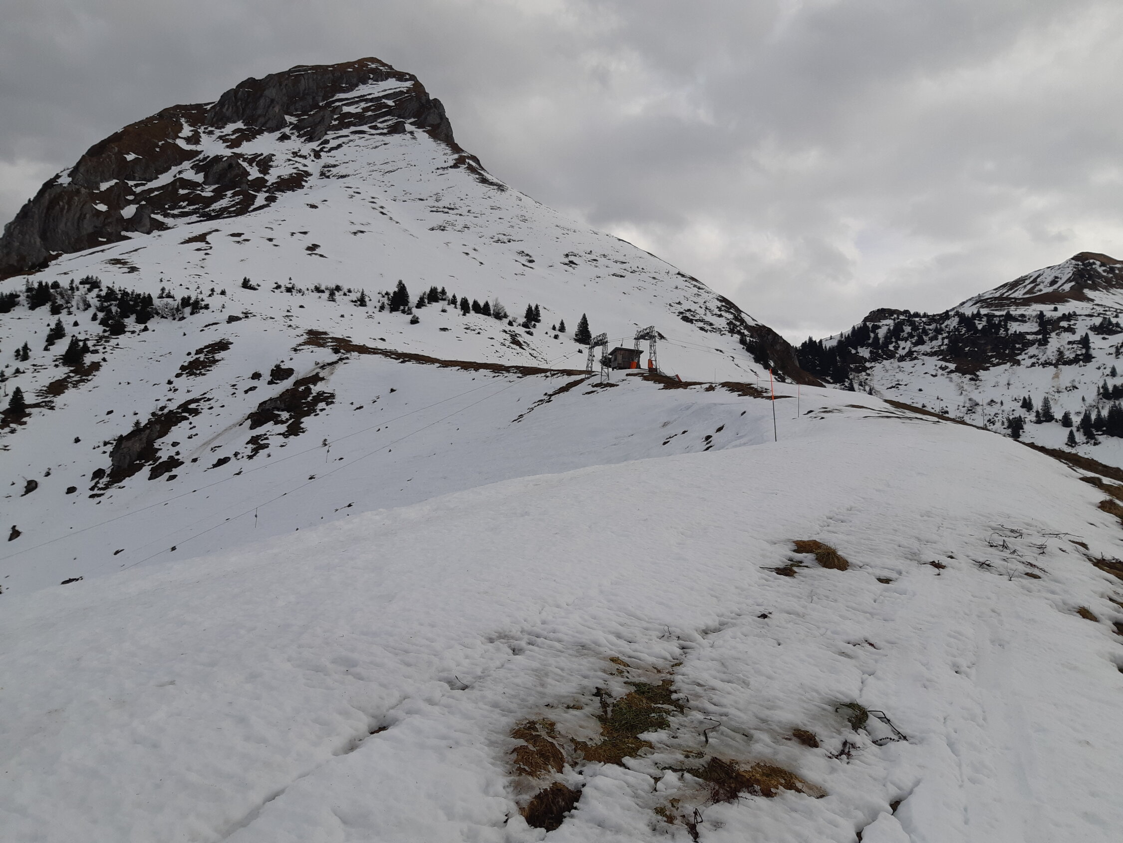Schnee erstaunlich gut zu fahren...Nassschnee auf ordentlich tragender Unterlage. Wie auf einer weiche Piste...kein Bruchharsch...Aber wenig Schnee - teilweise muss der "Durchgang" gesucht werden.