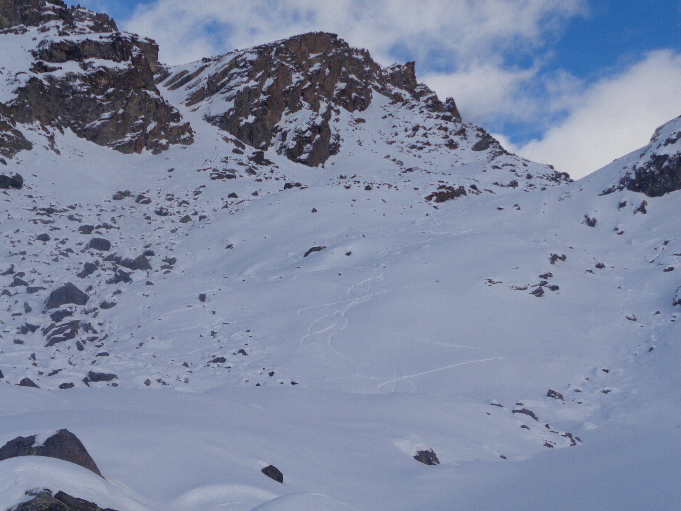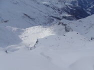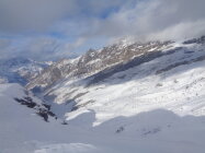 Aufstieg und Abfahrt: Der Aufstieg ab Fluealpe verläuft über geschützte Mulden und Terassen. Hier hatte es bis zu 30cm frischen Pulverschnee.