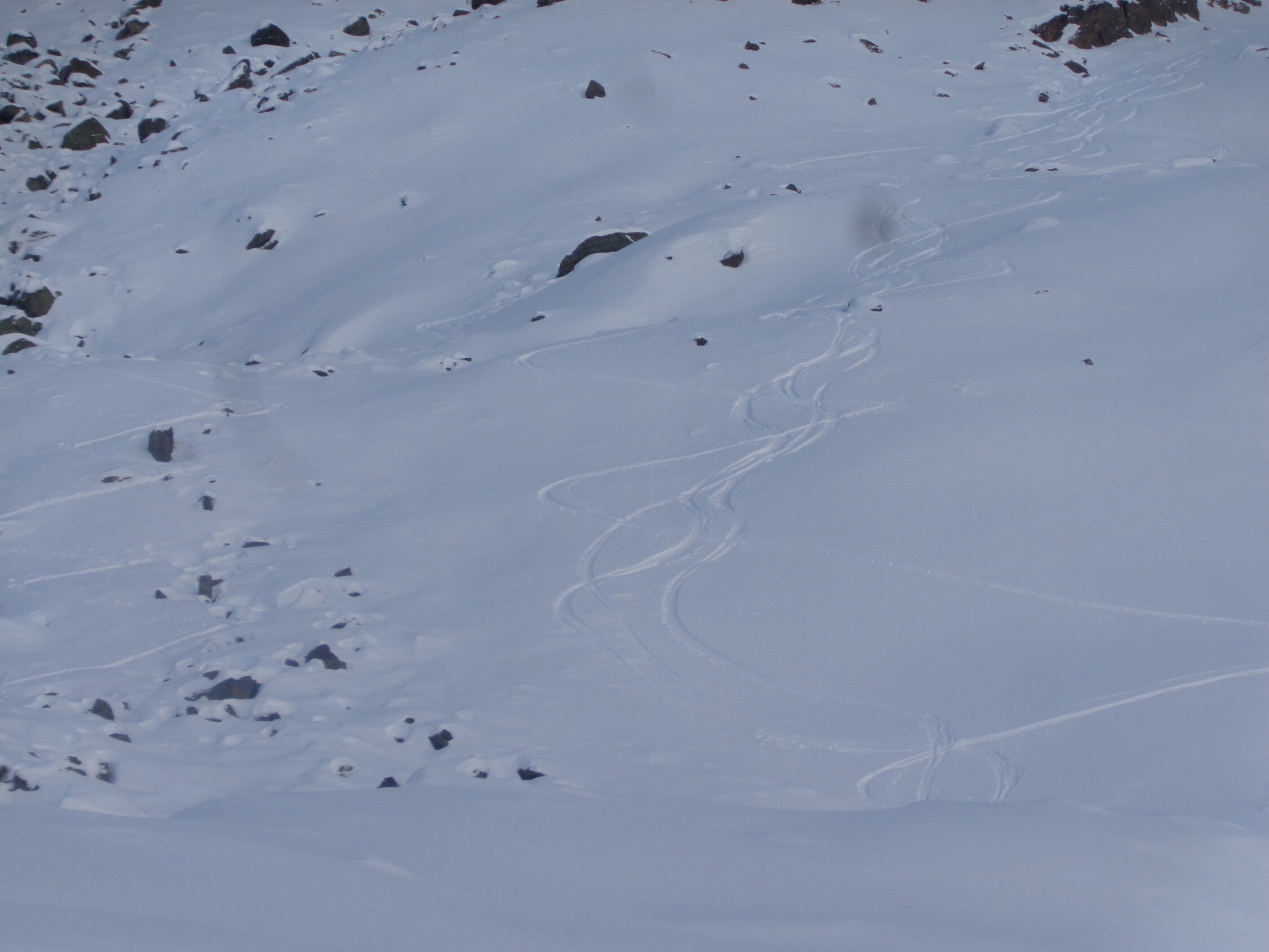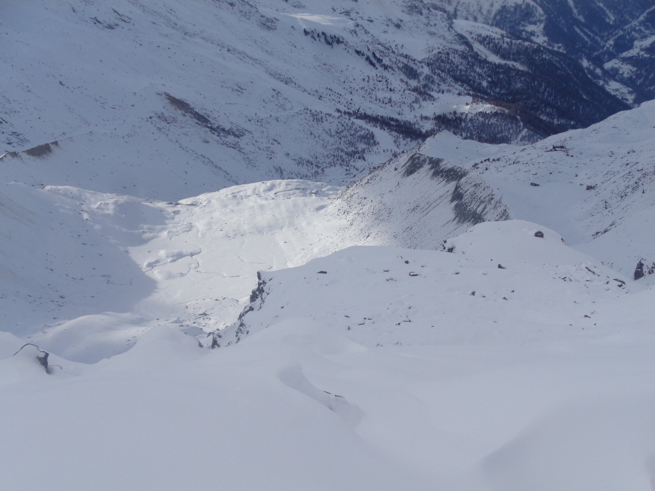 Vorsicht: Man hat zwei Wumm Geräusche gehört. Der Wind verfrachtet den Schnee momentan sehr stark, und es gibt Triebschneeansammlungen.