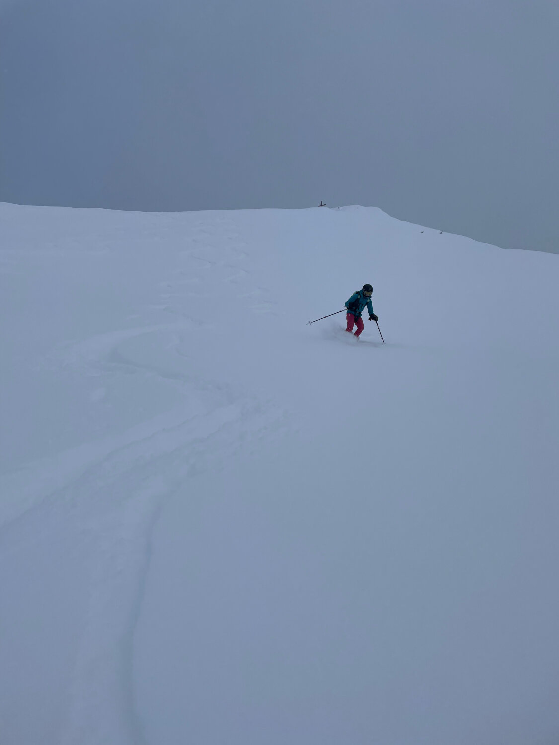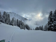 Ab Talboden frischer Pulverschnee (ca. 20-25cm), leider ohne Grundlage.