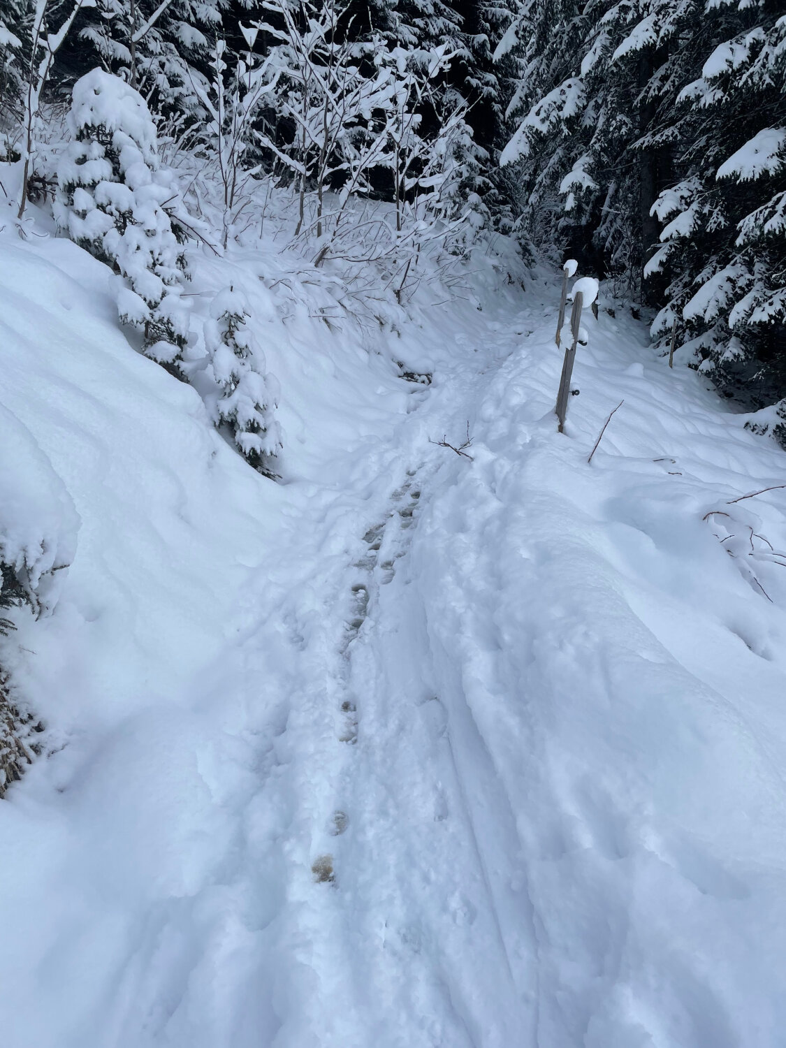 Da wir den nicht ausreichenden Schnee im Wald erwartet haben, haben wir die Tour mit der Abfahrt über die Kanzelwand Skipiste geplant.