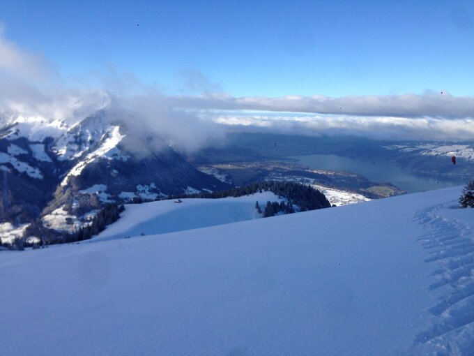 kalt -5 grad,windstill, gute Spur.start zuhause ca 922m.ü.M mit 10 cm Pulverschnee rasch zunehmend bis 20 cm auf 1200 m.ü.M. Forststrasse gut auch zum abfahren . Ab 1500 bis max 30 cm Neuschnee in windgeschützten Lagen. top Fluffy Pulver! Einmal Gipfelhang direkt und ein weiteres Mal über den flachen Rücken. Beides war super! Alte Spuren stören kaum!