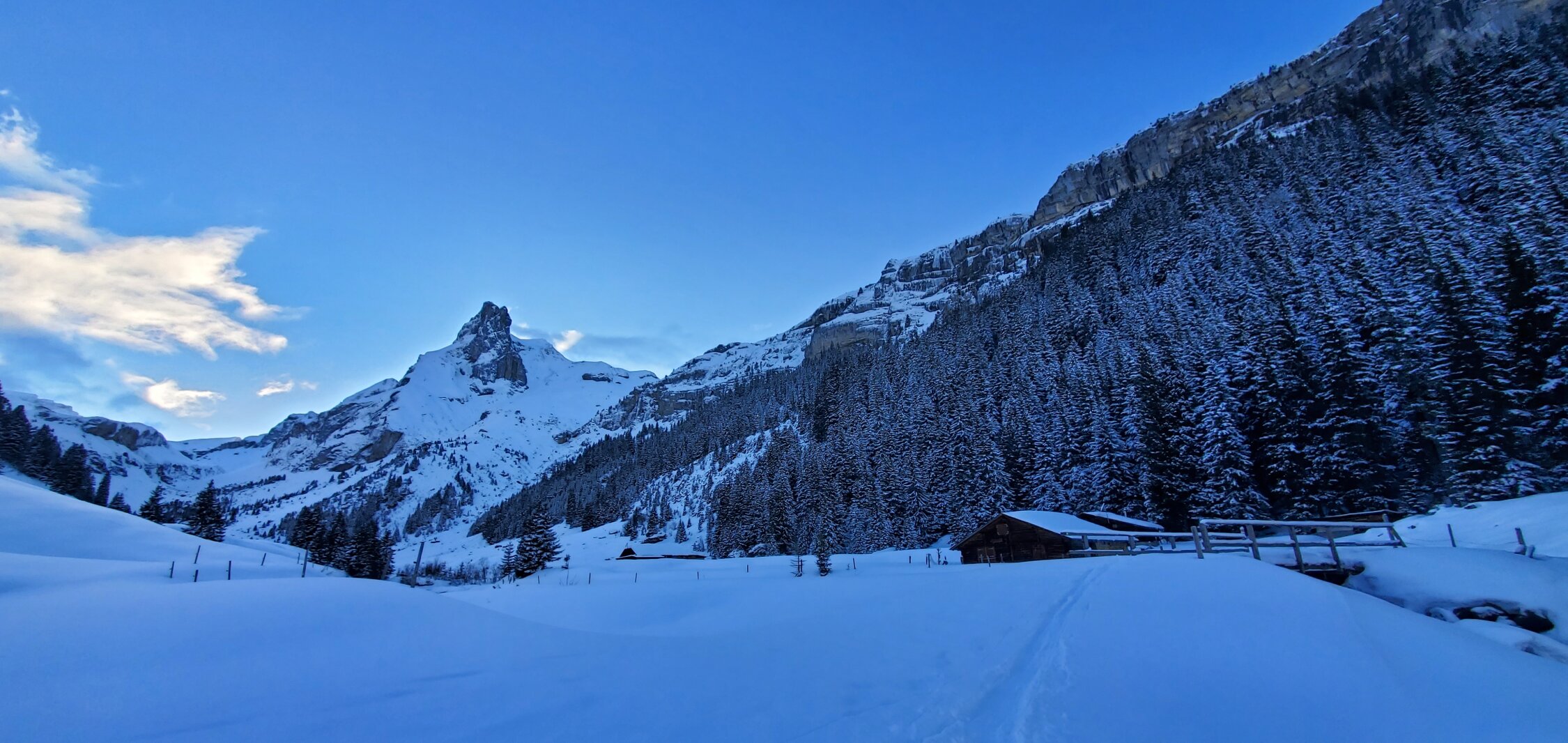 10 bis 30cm Pulver auf harten Unterlage. wenig Schnee im Wald, dann besser. Kalt am Gipfel. Abfahrt sehr schöne oben (anfang eisig), dann Soustal ok, ging heute bis Isenfluh. Es braucht aber Schnee...