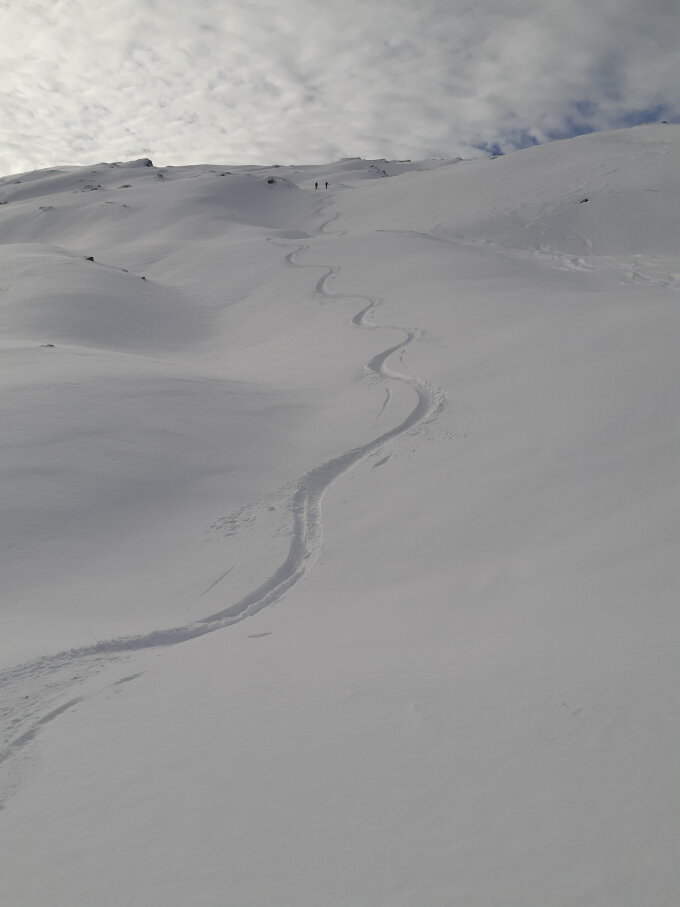 Die Gefahr Steine zu erwischen ist groß. Gipfelhang super Pulver wenn auch etwas verblasen. Ab dem Grat muss man dann den Schnee etwas suchen..oberhalb vom Lift im Wald kurze Tragestrecke.