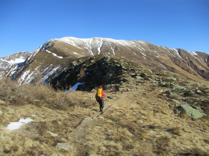 Herbsttypische Verhältnisse: unten schneefrei, oben nur mal angeschneit. Viele Vereisungen auf den Wegen, insbesondere im Hangweg von der Capanna S. Lucio zur Alpe Pietrarossa. Alles jedoch problemlos umgehbar. Stürmischer und auch saukalter Föhn, insbesondere auf der Gazzirola und auf dem Kammweg dorthin. Tagsüber strahlend blauer Himmel, nachts sternenklar.