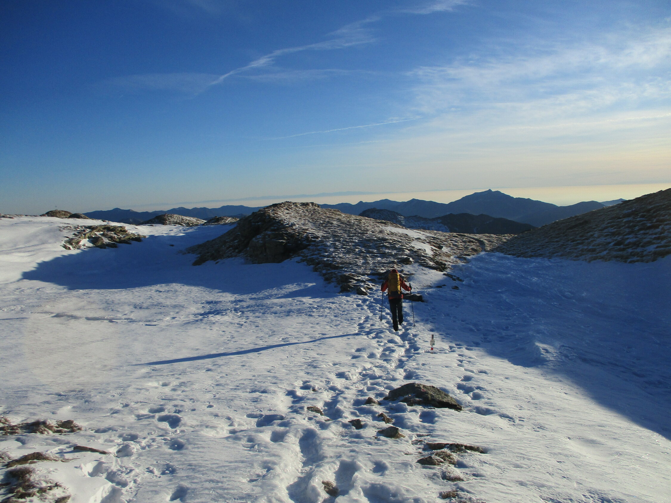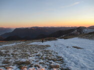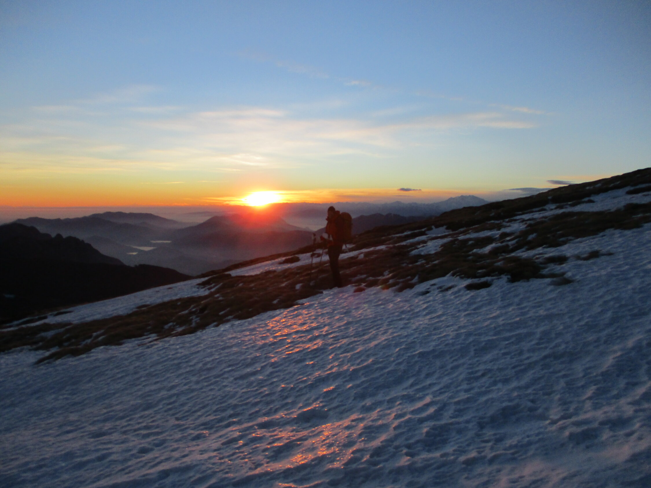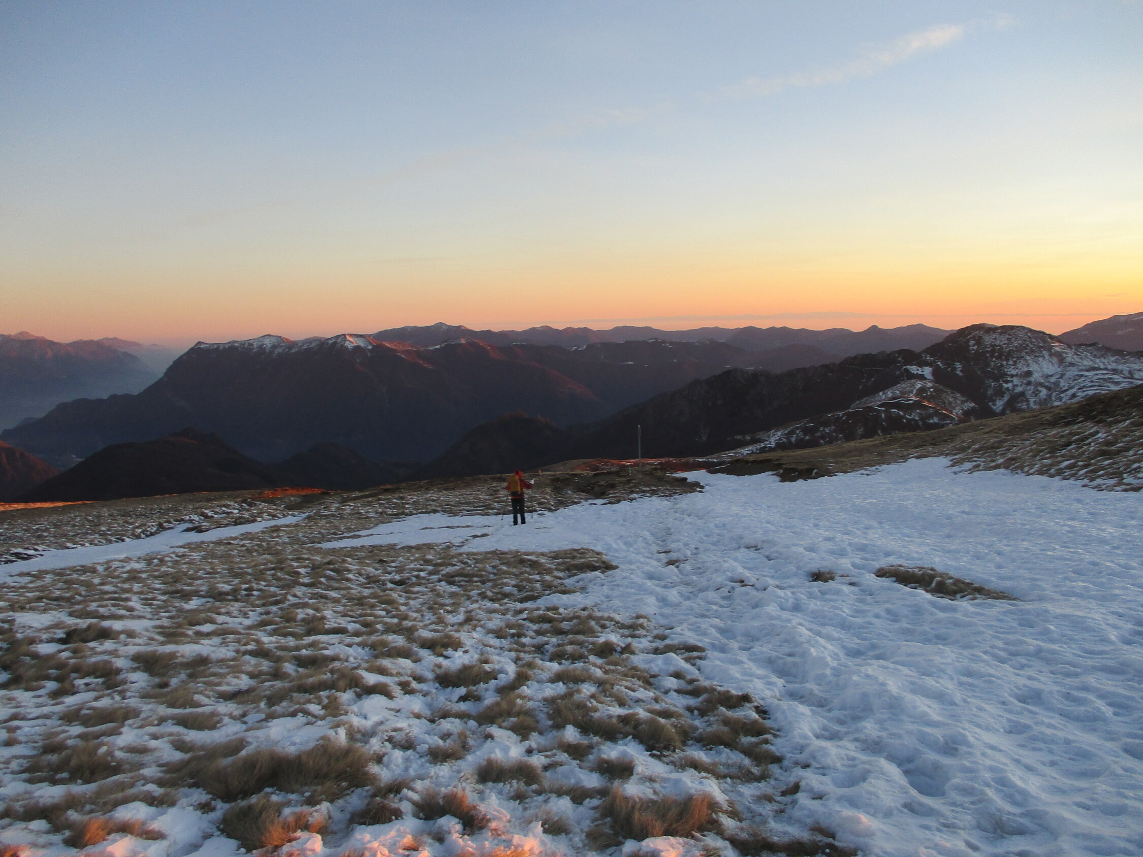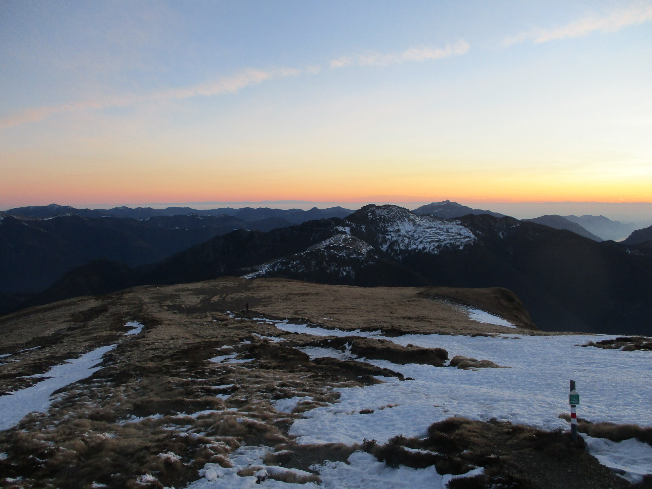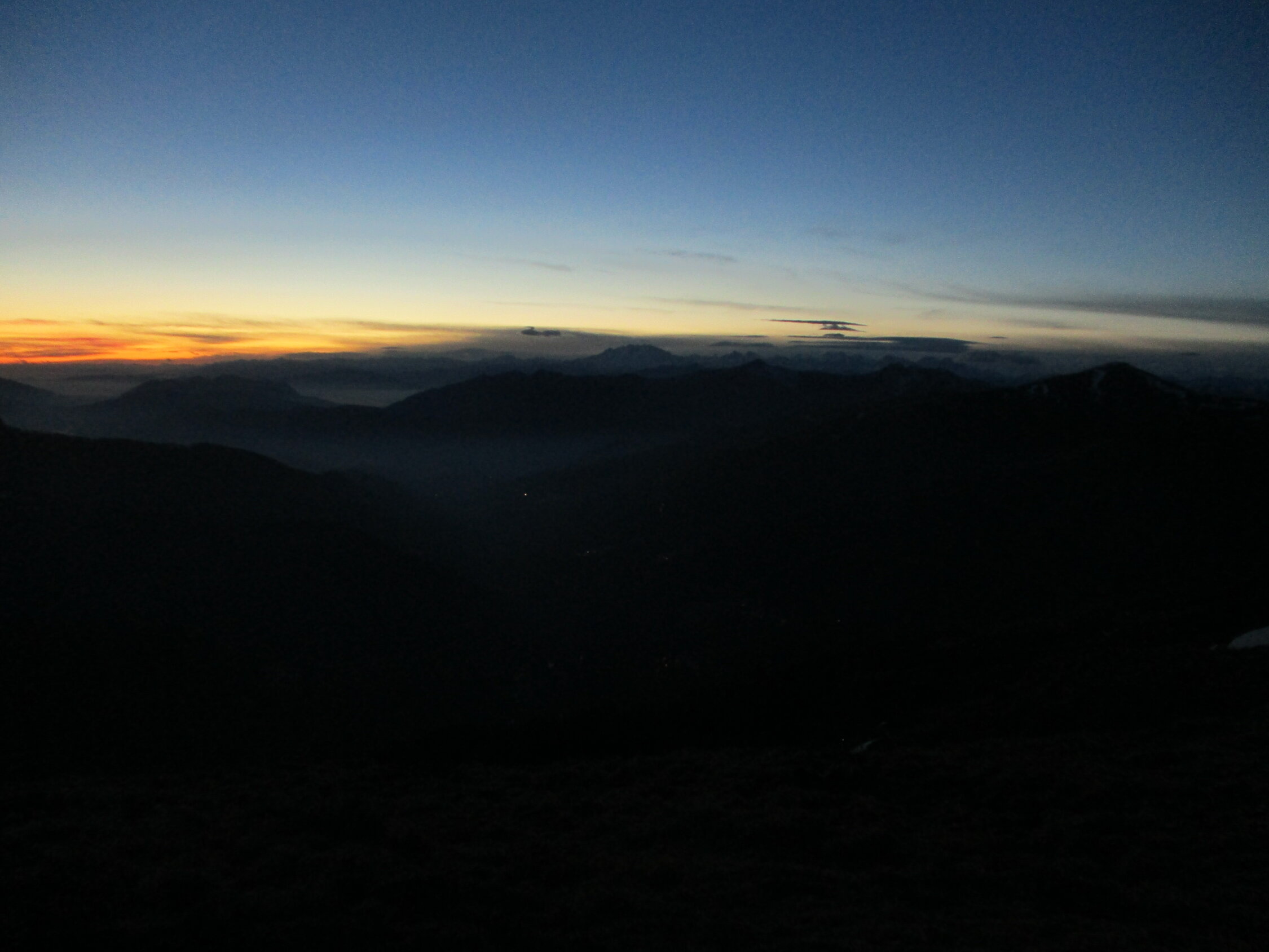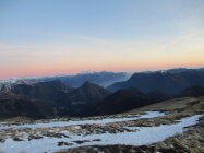 Wir hatten mit 12.30 h einen späten Start. Insofern war geplant, dass wir einen guten Teil der Route im Dunkeln zubringen werden. Ab Capanna S. Lucio dann also mit Blicken auf die Lichter von Lugano, Halbmond und Sternenmeer über uns. Zuvor konnten wir Dämmerlicht eines geröteten Himmels deutlich die dominante Spitze des Monviso erkennen. Einfach phantastisch!
