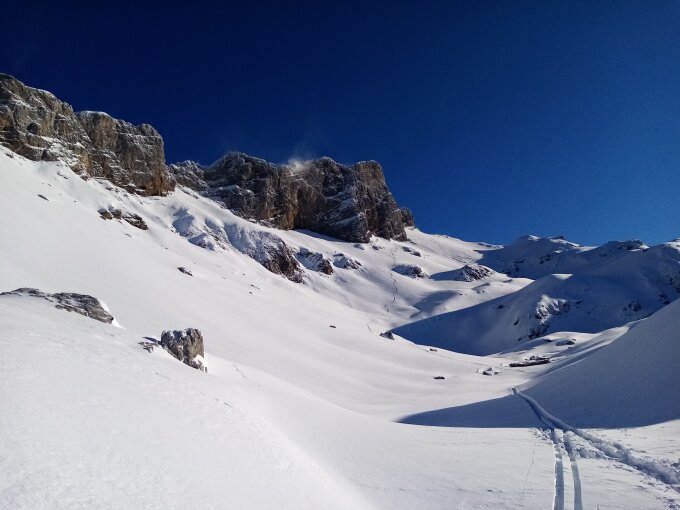 Vom Sattel bis zurück nach Riemenstalden top Schneeverhältnisse. Zum Teil vorausschauende Fahrweise erforderlich gewesen da Neuschnee die Felsen verdeckte....jedoch perfekter Powder und noch der Hang nur von 3 weiteren Personen befahren worden